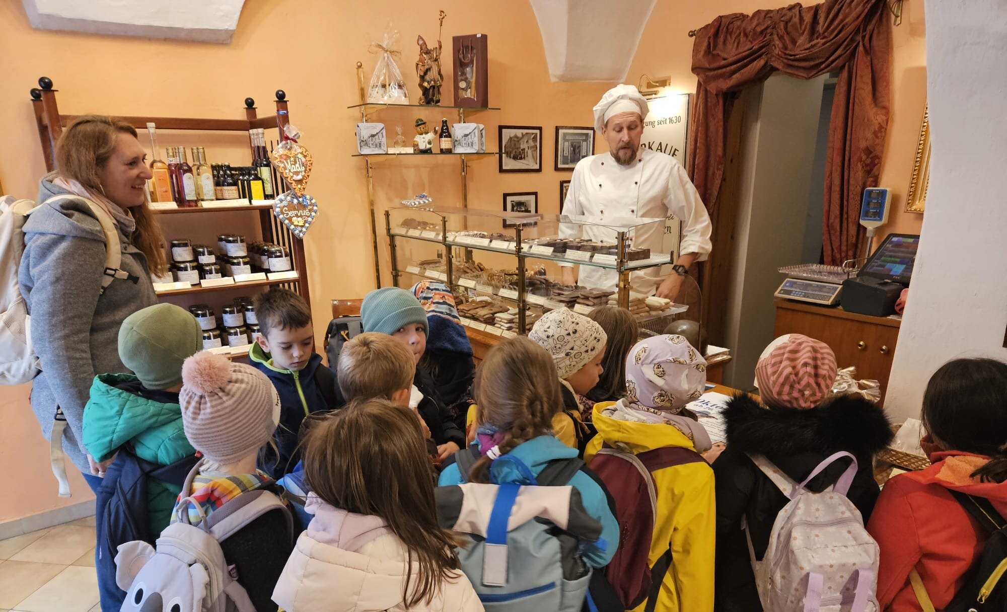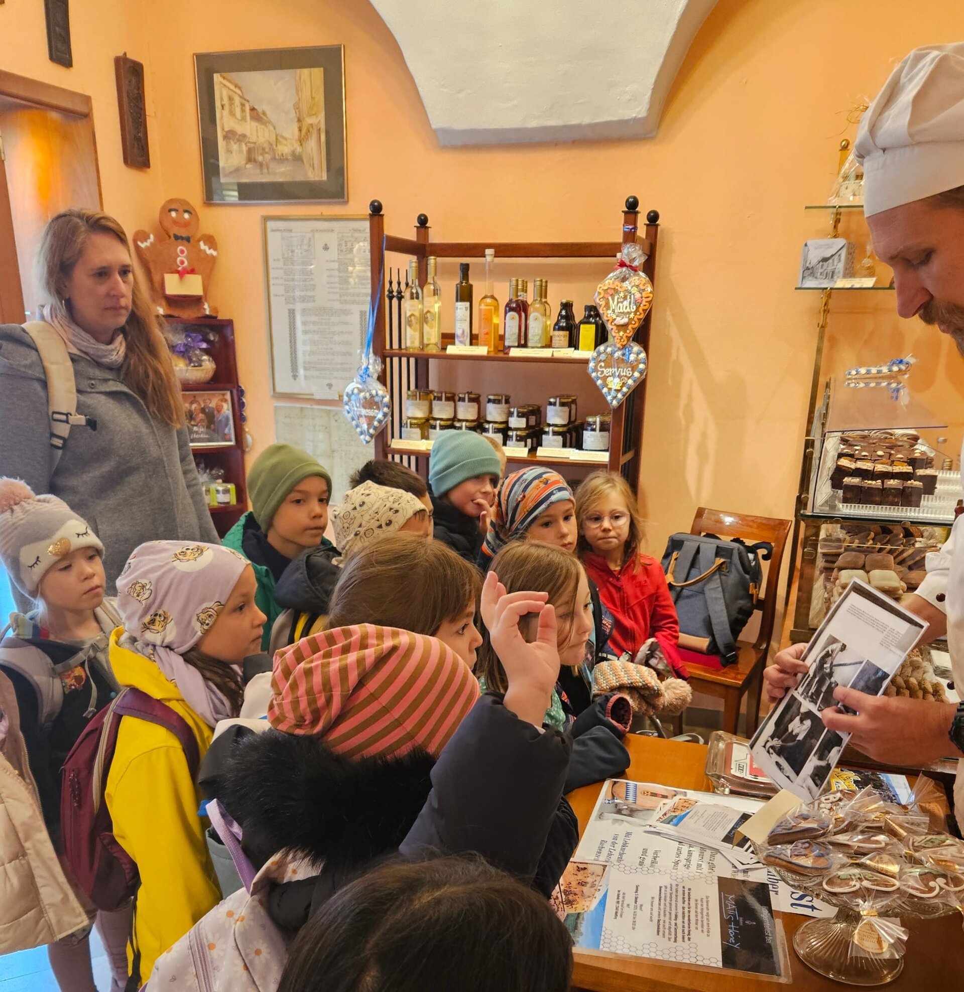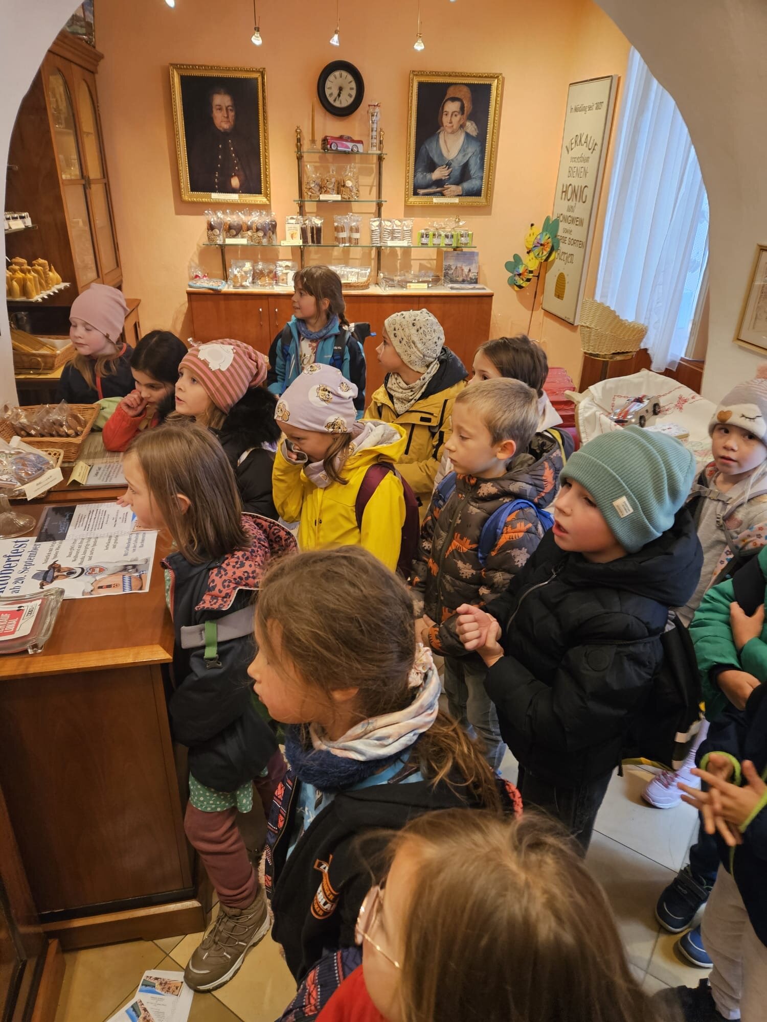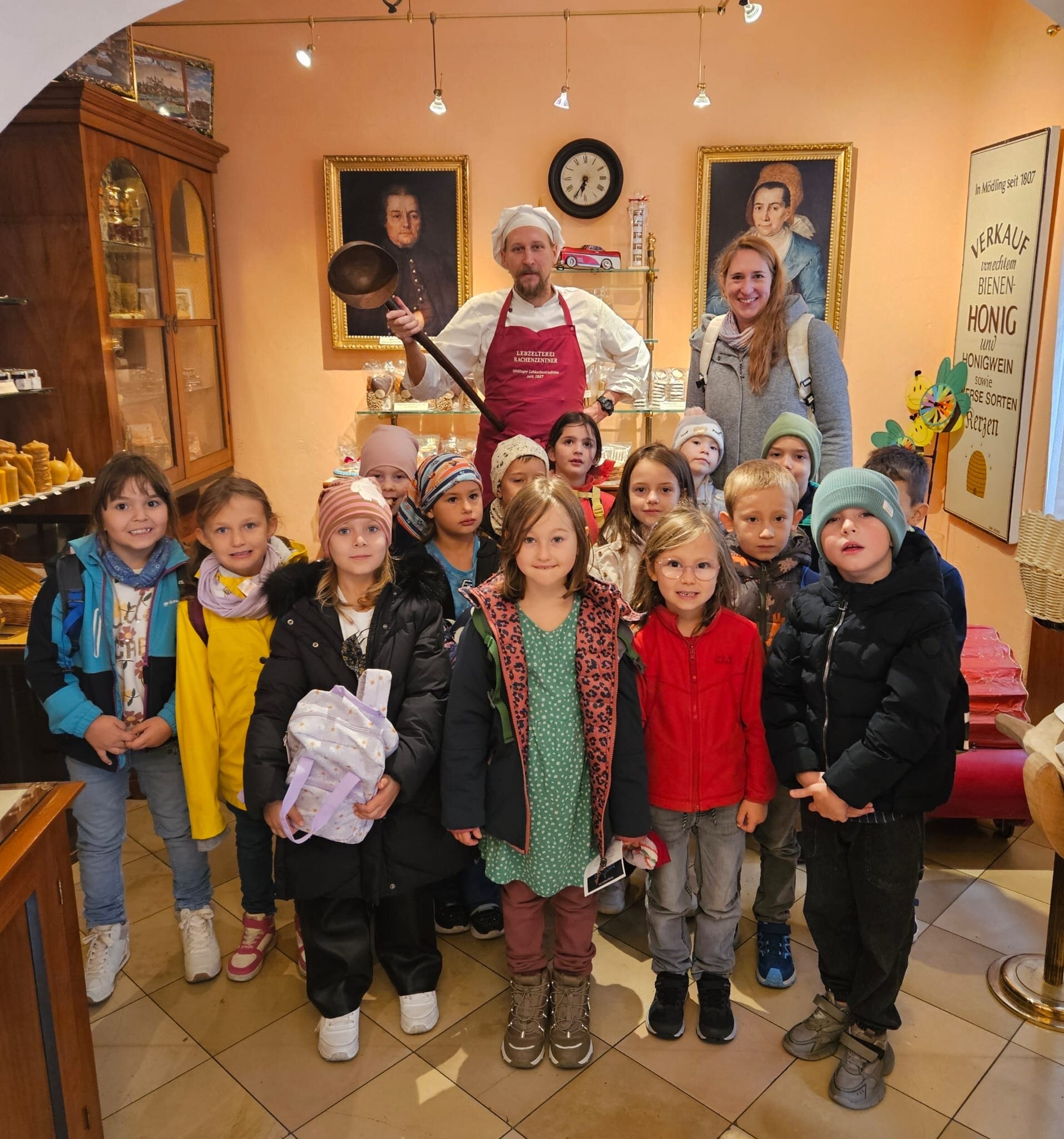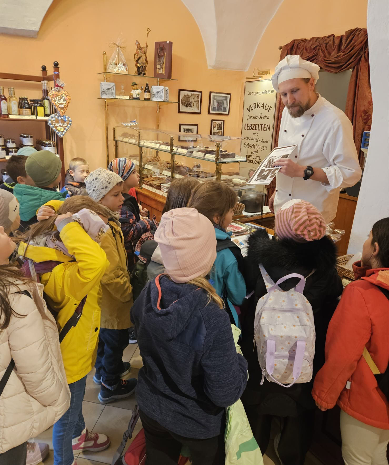 Die 1a Klasse machte ihren ersten Lehrausgang zur Lebzelterei Rachenzentner in Mödling. Gemeinsam gingen wir zu Fuß dorthin. Im Geschäft erfuhren wir, aus welchen Zutaten Lebkuchen besteht und wie der Teig früher und heute zubereitet wird. Besonders spannend war die Besichtigung der Backstube, wo wir die verschiedenen Geräte wie die große Rührmaschine, Teigteiler und den Backofen sehen konnten. Es war ein interessanter und lehrreicher Ausflug.
