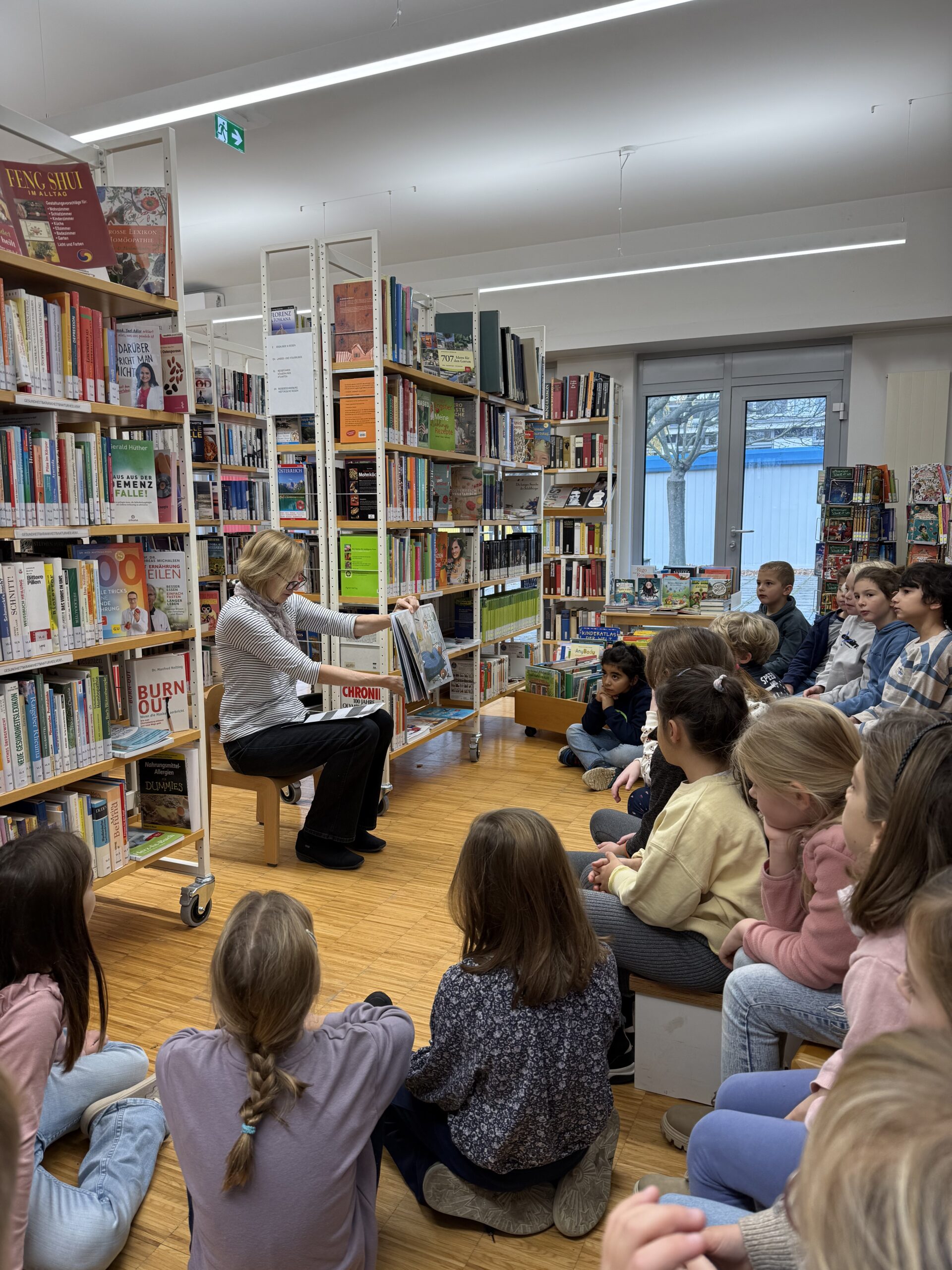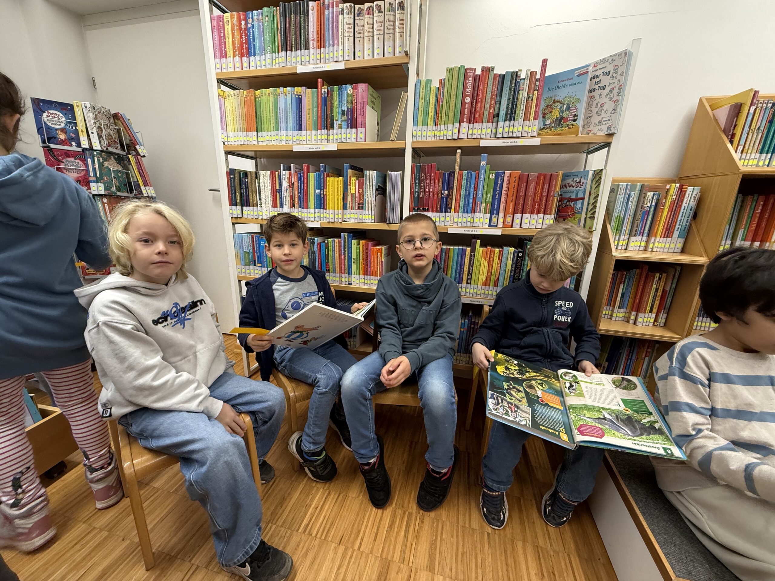 Am 11. November 2025 sind wir in die Bibliothek in die Südstadt gegangen. Dort haben wir eine tolle Geschichte gehört und haben anschließend selbst die Bücher erkunden dürfen.