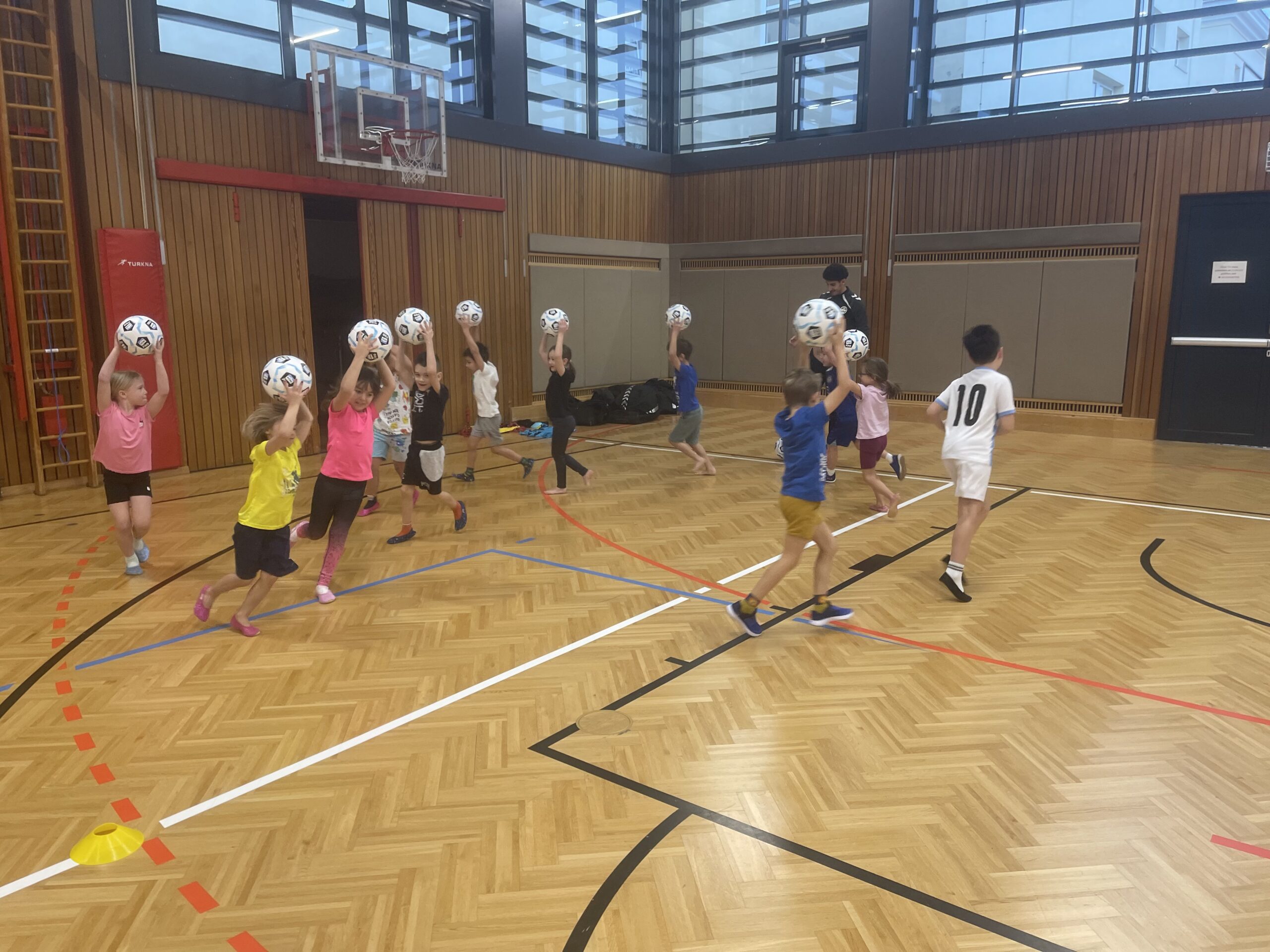 Die Klassen 1a, 2c, 4b ubd 4c erlebten eine besondere Turnstunde: Gemeinsam nahmen sie an einem Fußball-Workshop mit Spielern der Admira teil.