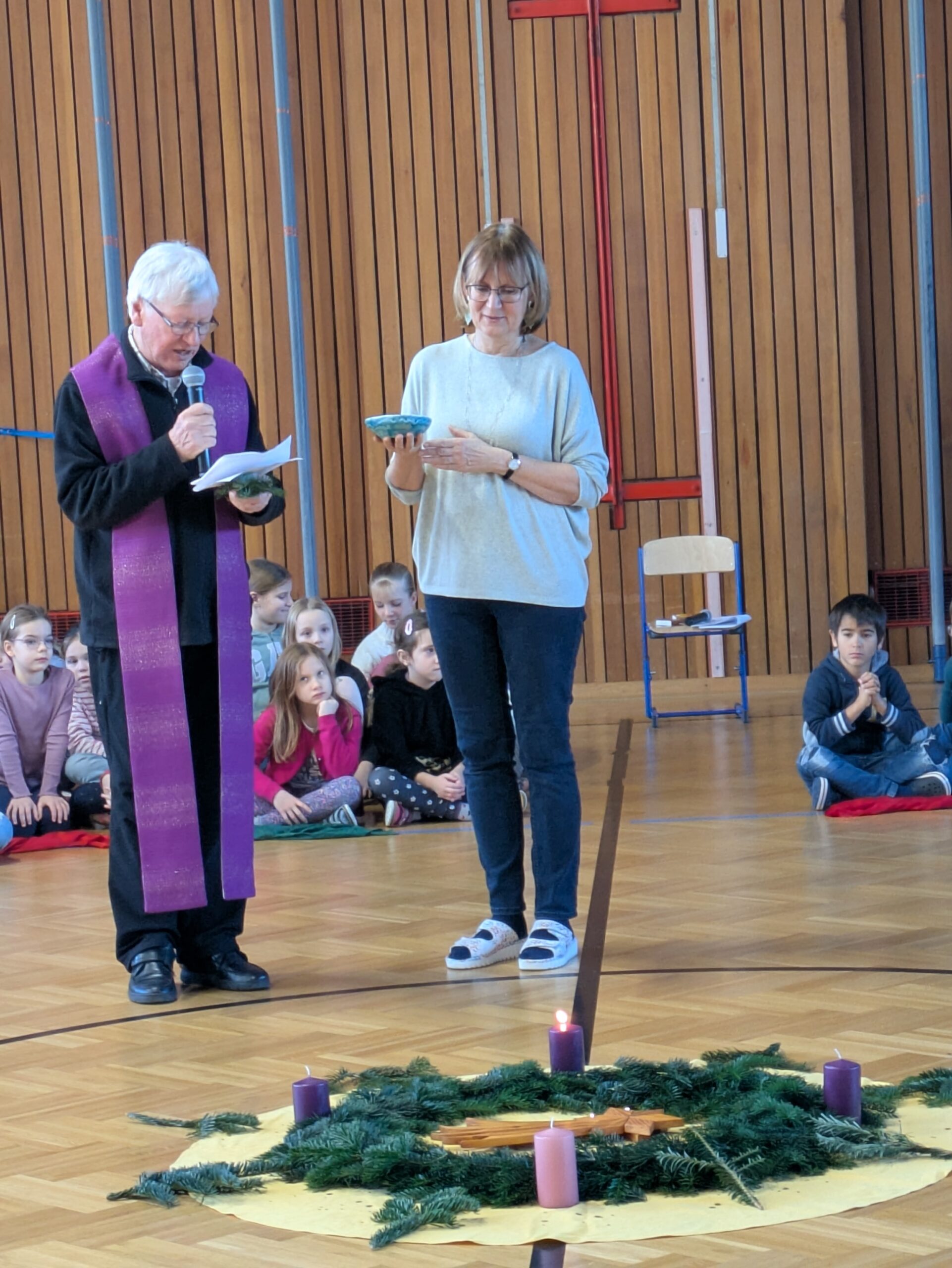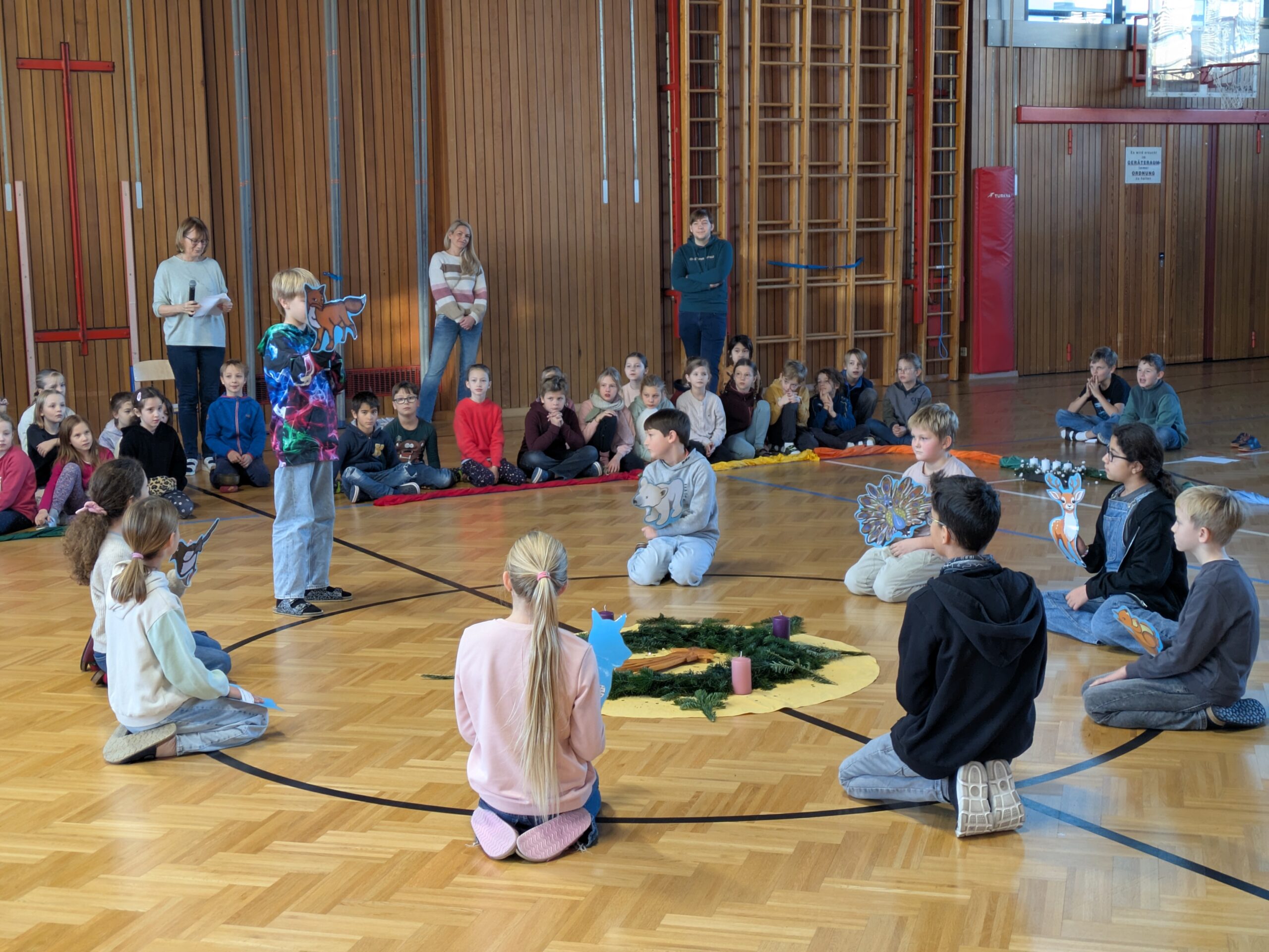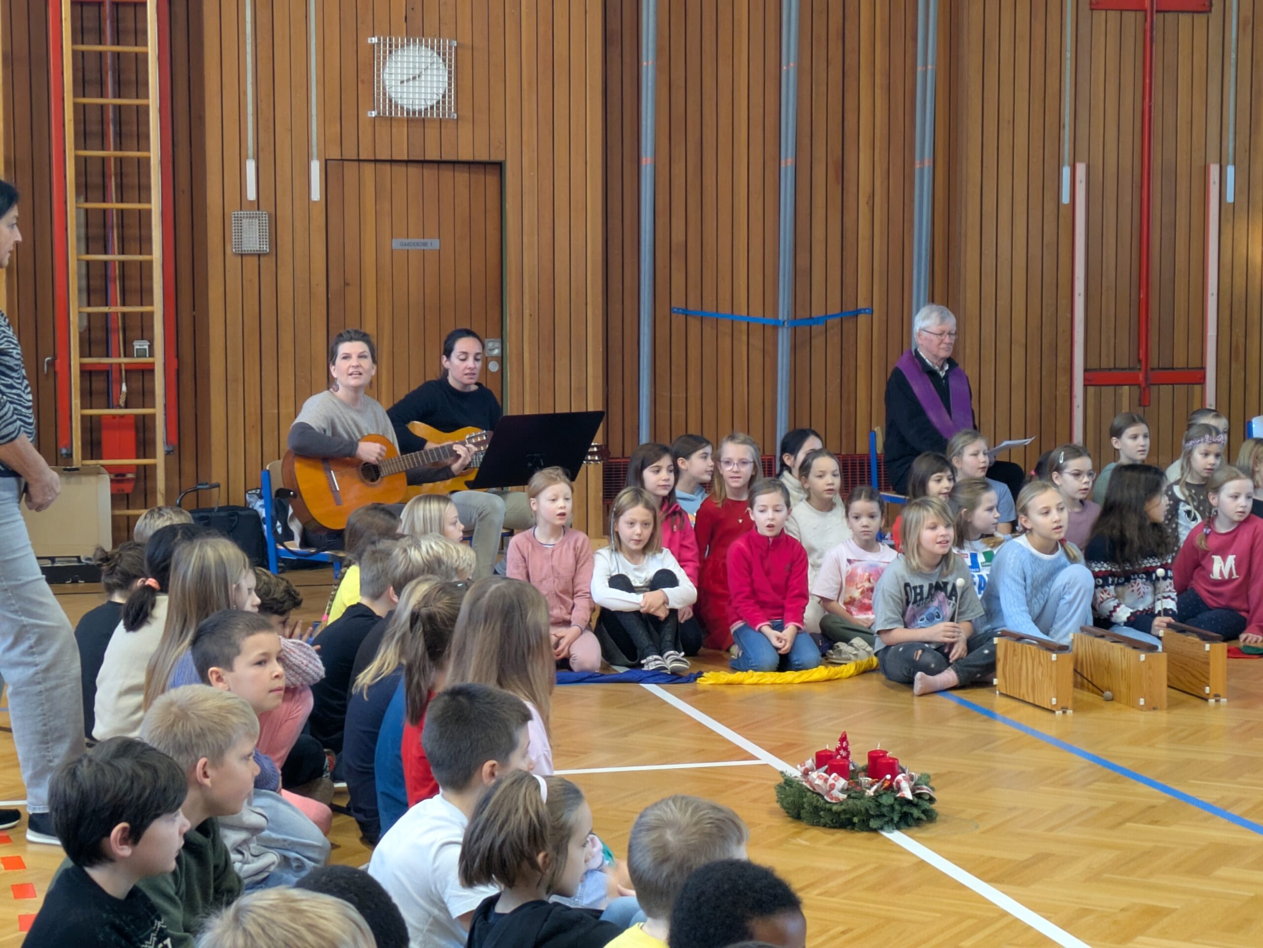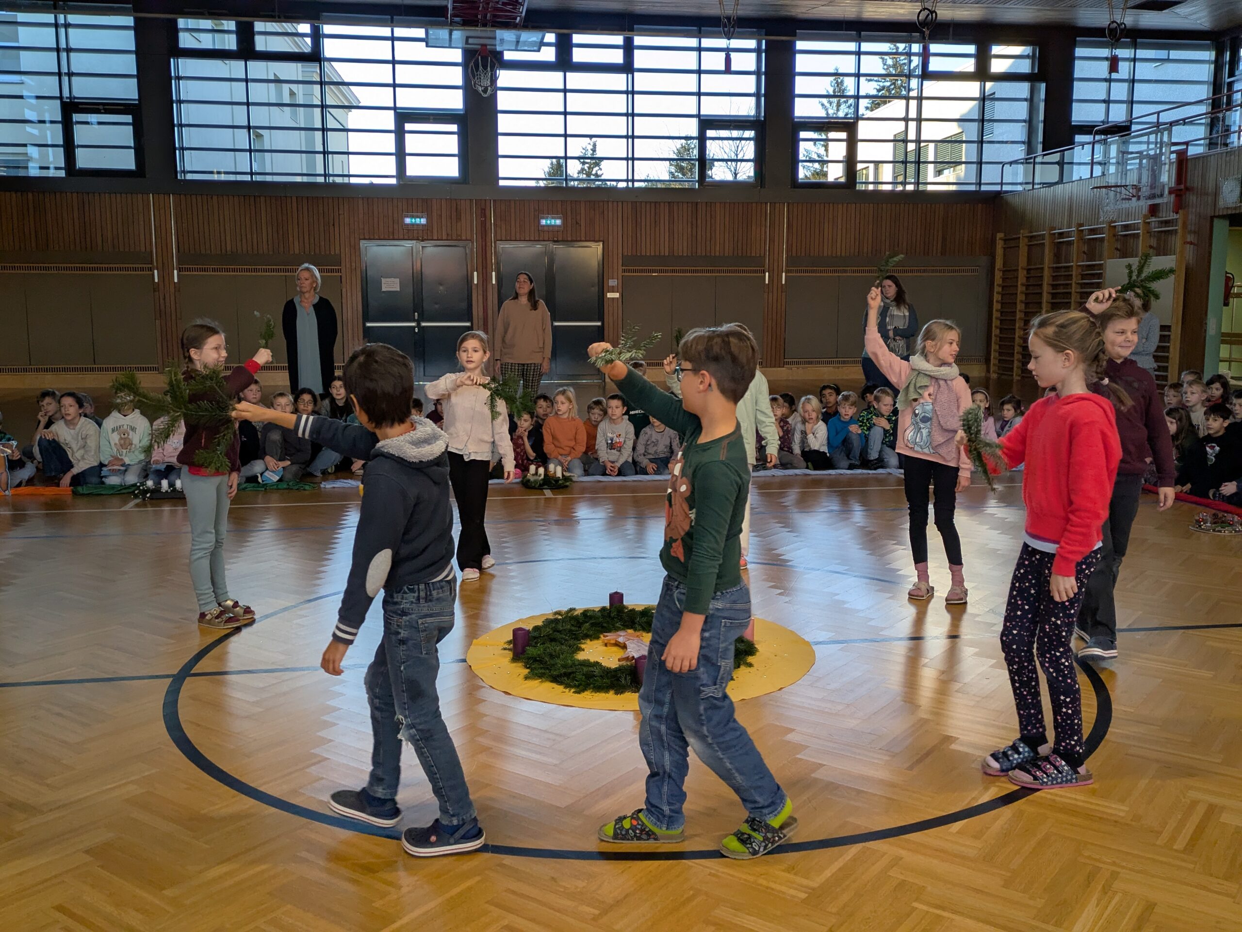 In einer stimmungsvollen Adventfeier im Turnsaal stimmte uns der Schulchor mit wunderschönen Liedern auf die vorweihnachtliche Zeit ein. Anschließend wurden die Adventkränze feierlich gesegnet. Ein besonderer Gänsehautmoment entstand, als alle gemeinsam das Lied „Zünd ein Licht an“ sangen und der Turnsaal in warmem Licht erstrahlte.
