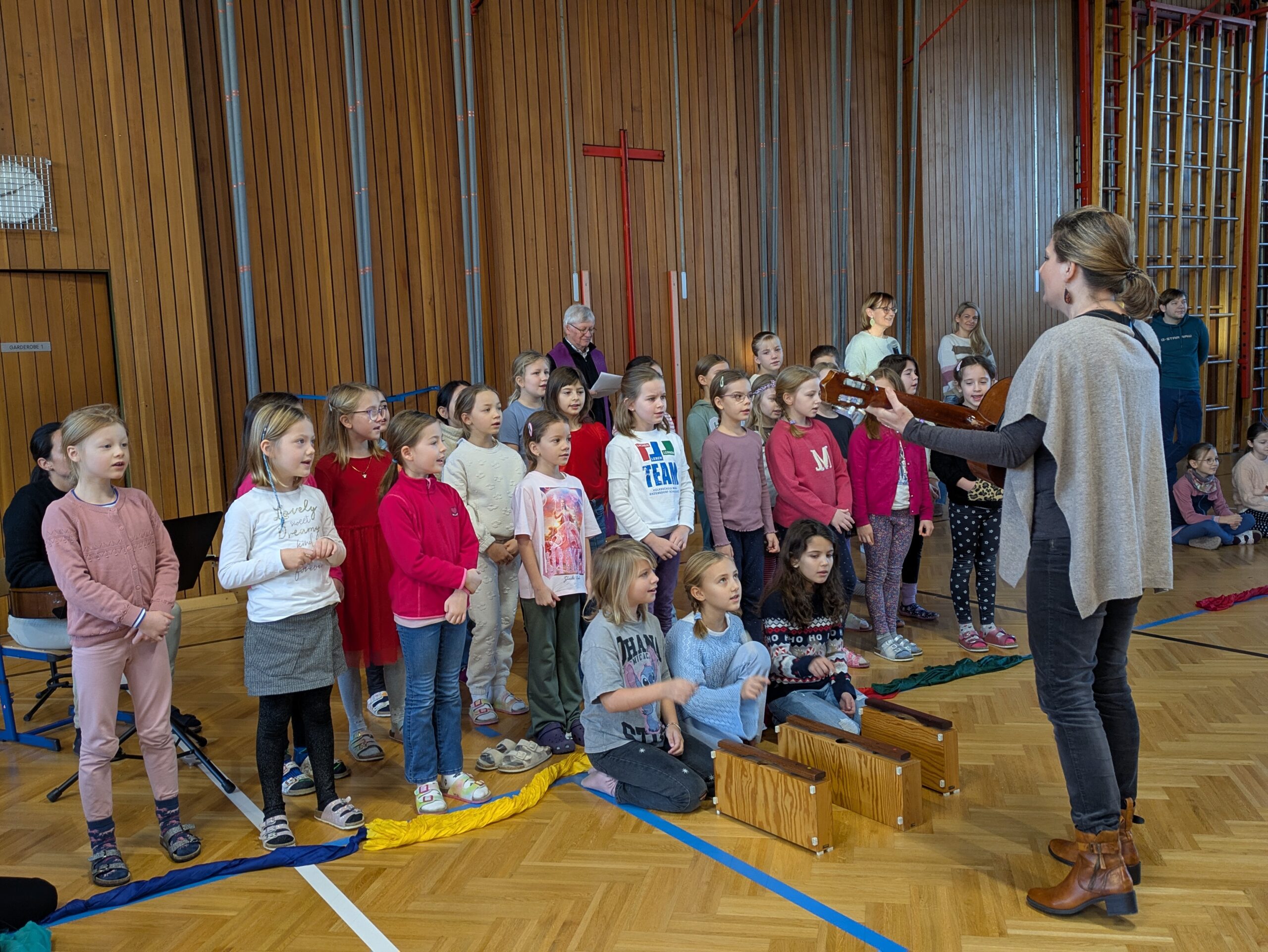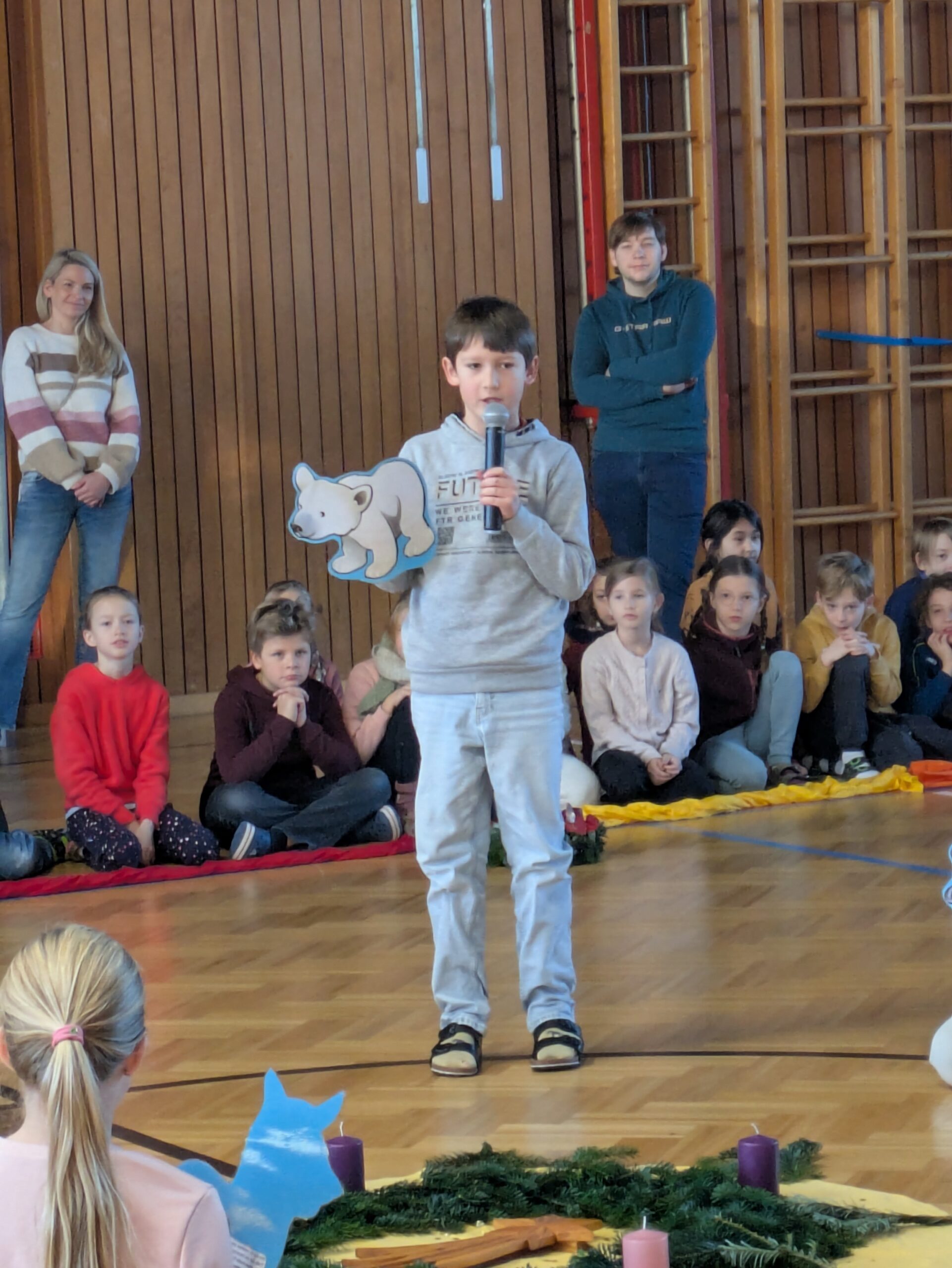 Für einen weiteren Höhepunkt sorgte die Klasse 4B, die ein liebevoll einstudiertes Weihnachtsstück präsentierte und das Publikum mit viel Engagement und Spielfreude begeisterte.