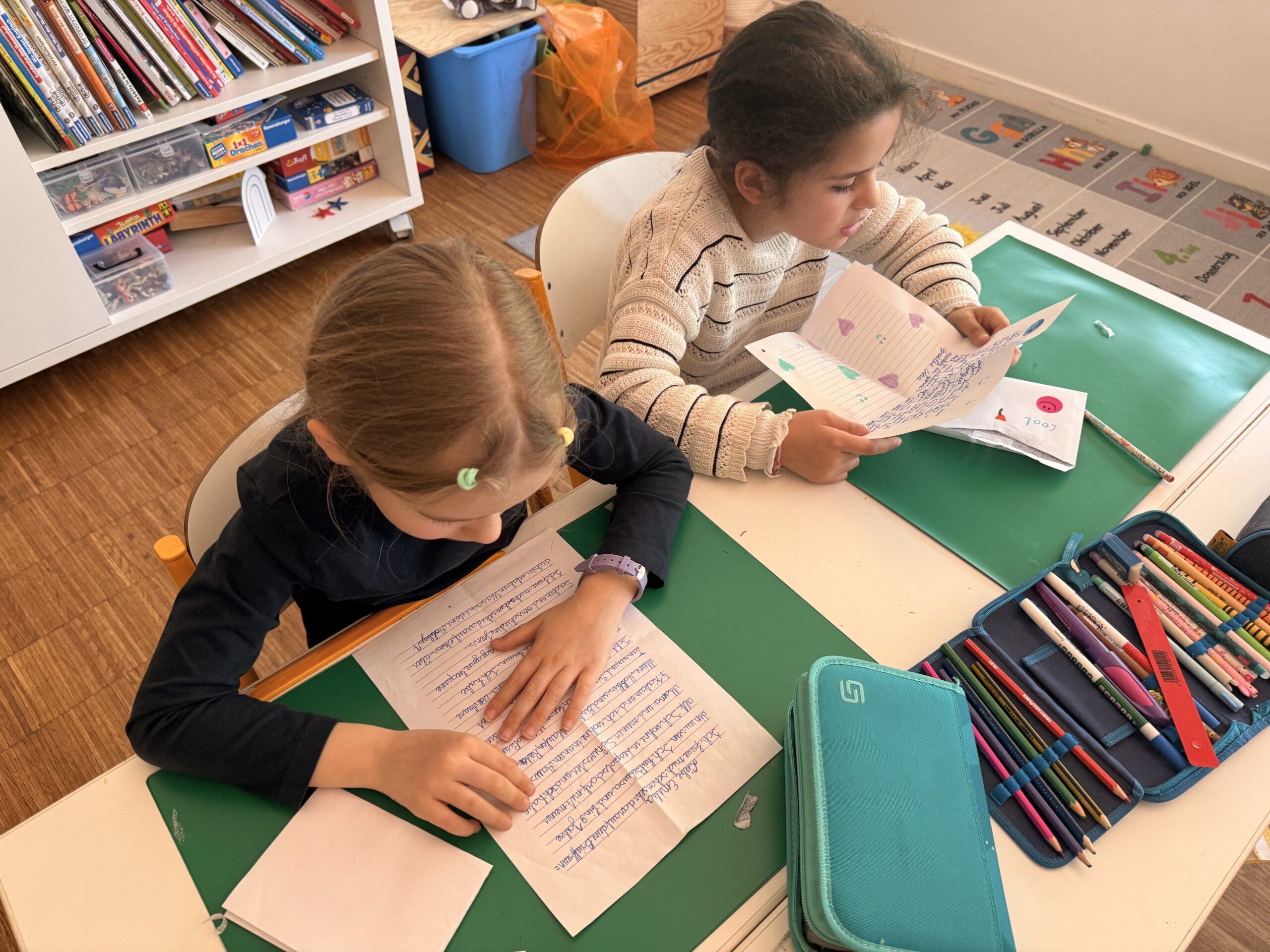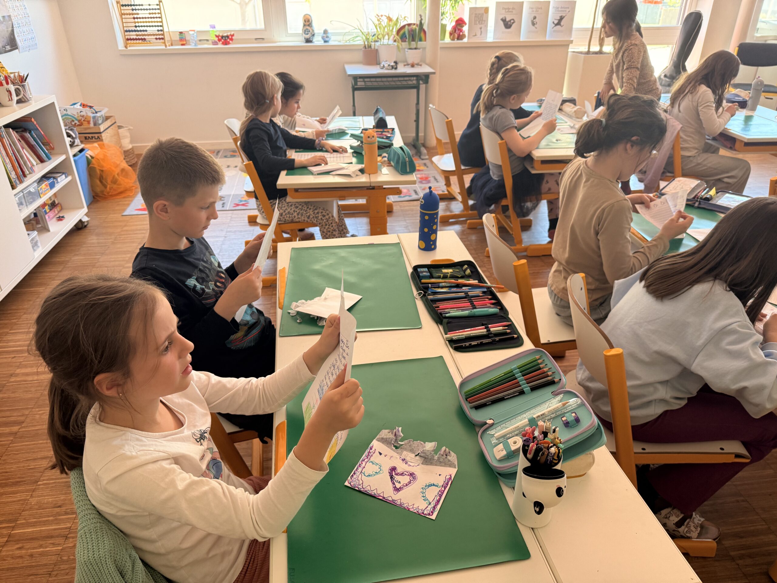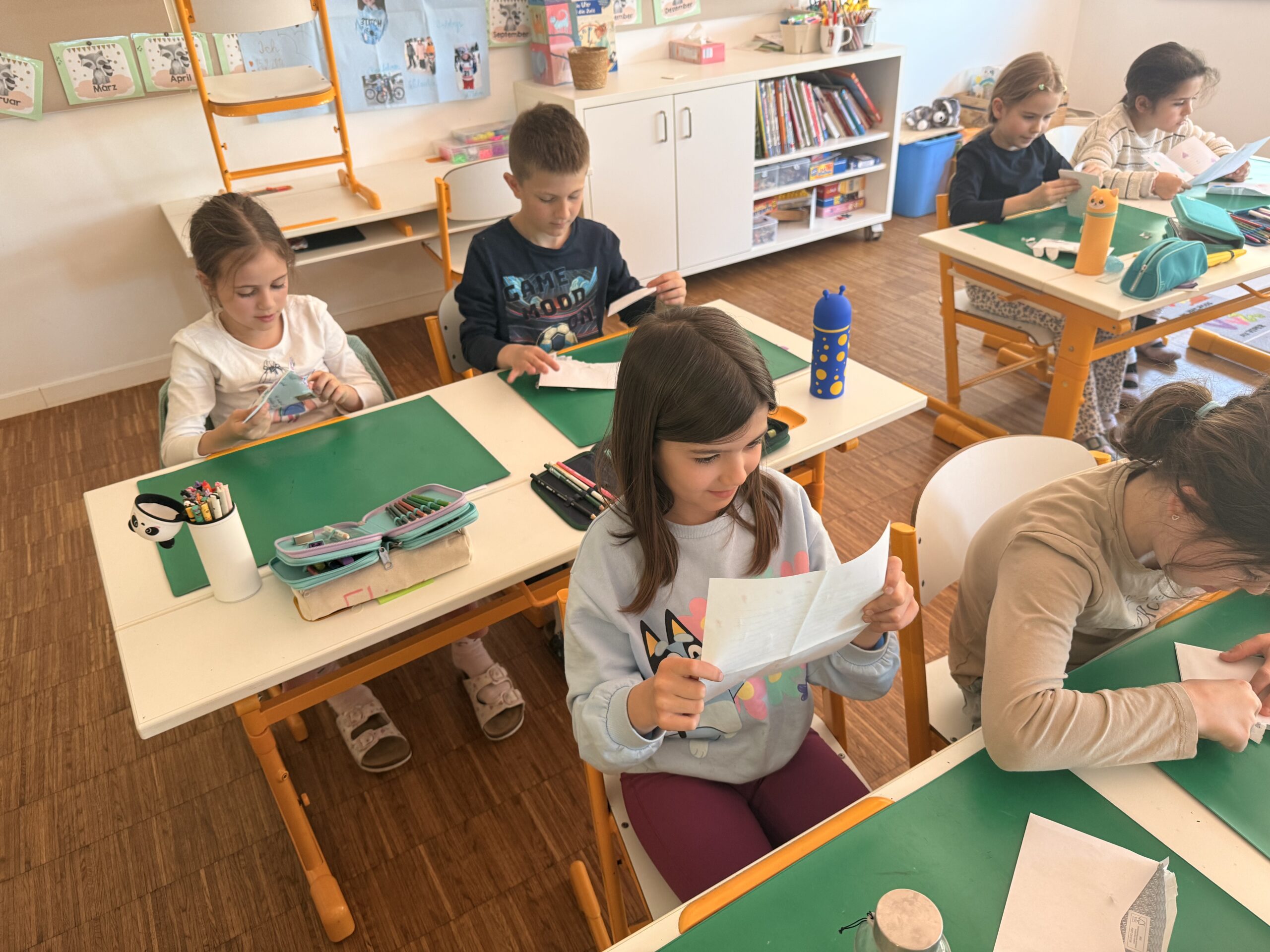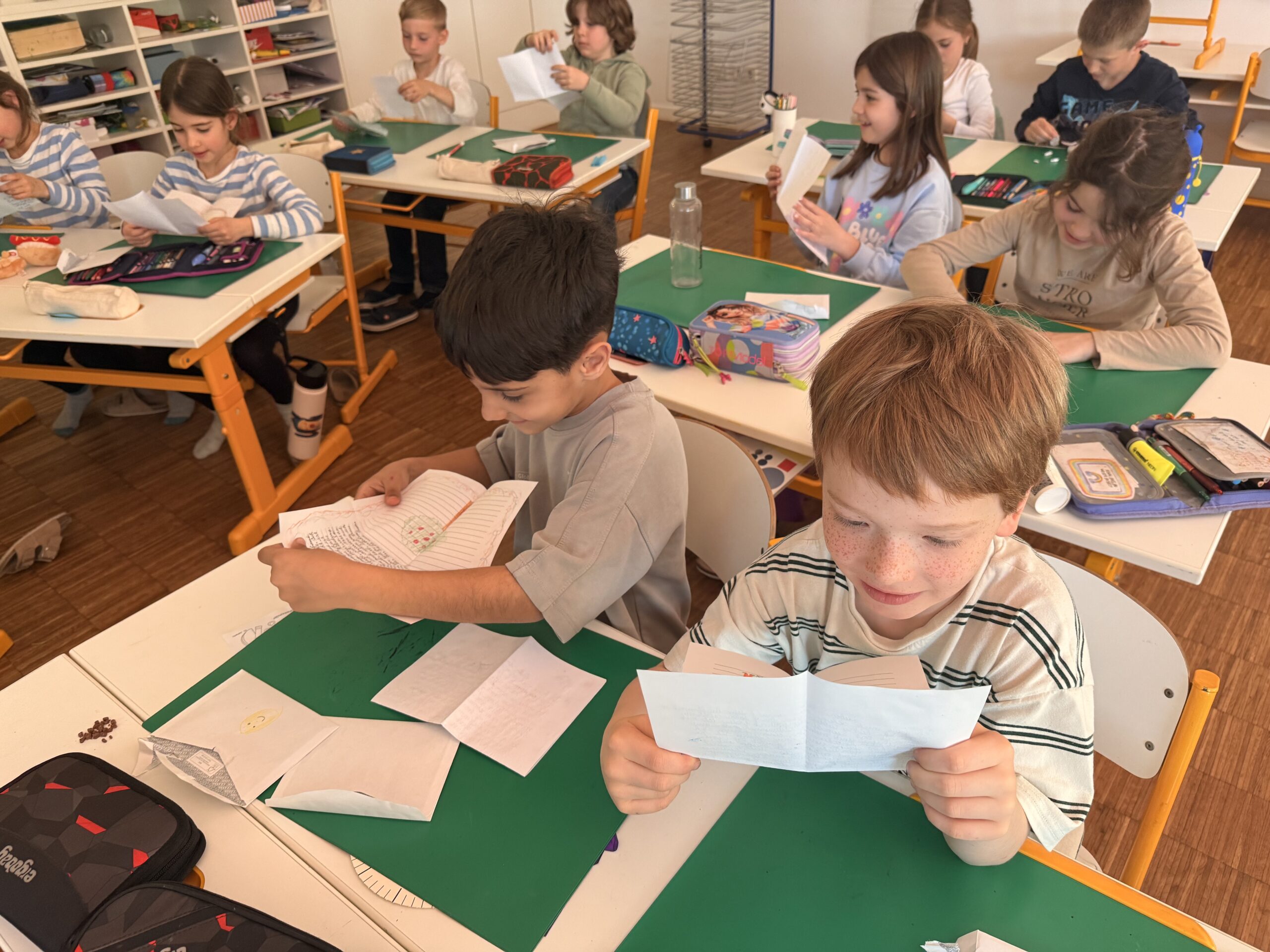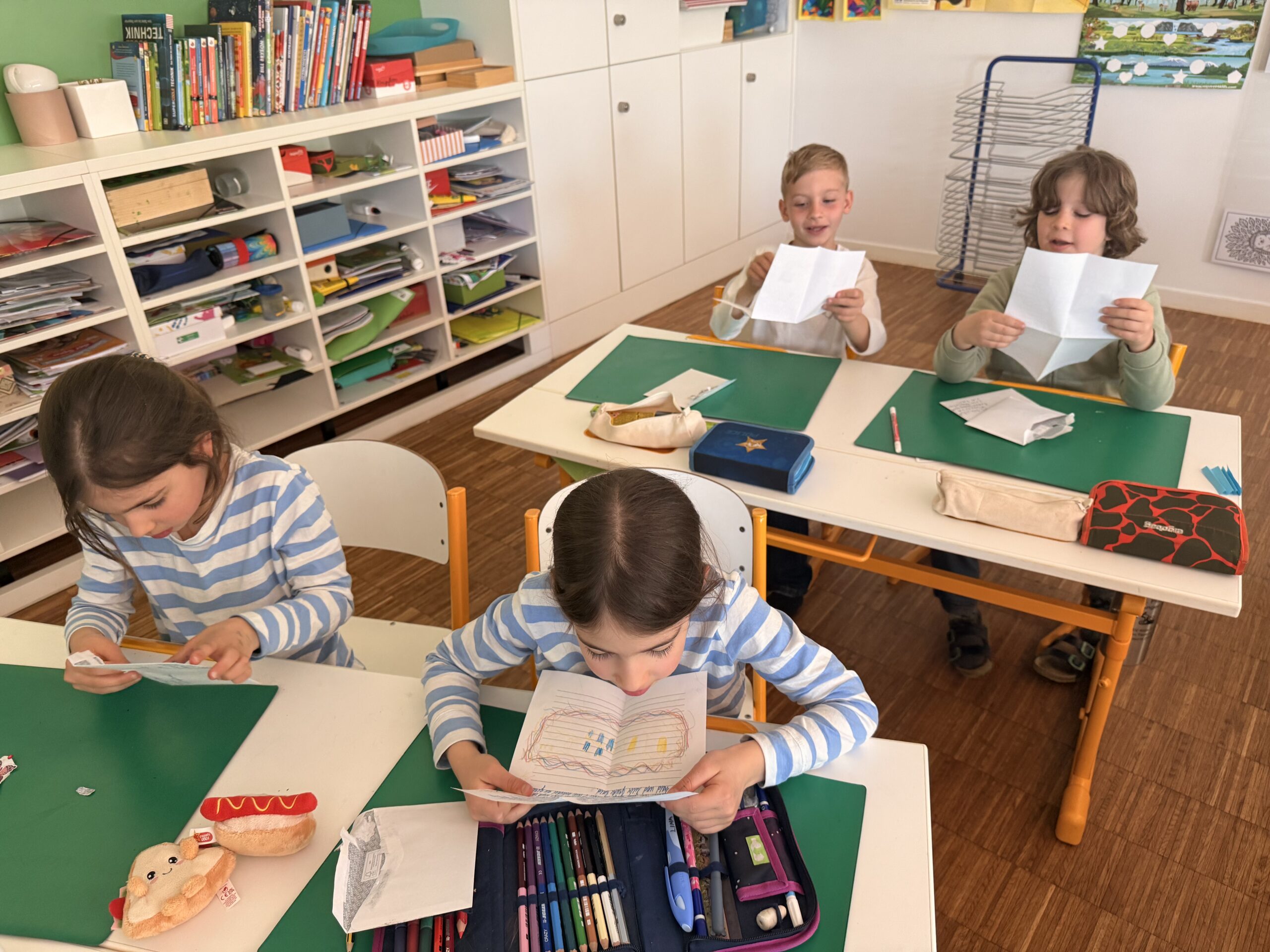Voller Freude öffneten und lasen alle Kinder ihre ersten Briefe, persönlich adressiert. Erste Gemeinsamkeiten und Interessen wurden festgestellt. Nun machen wir uns motiviert an die Arbeit, um unseren neuen Brieffreunden zu antworten, so spannend!