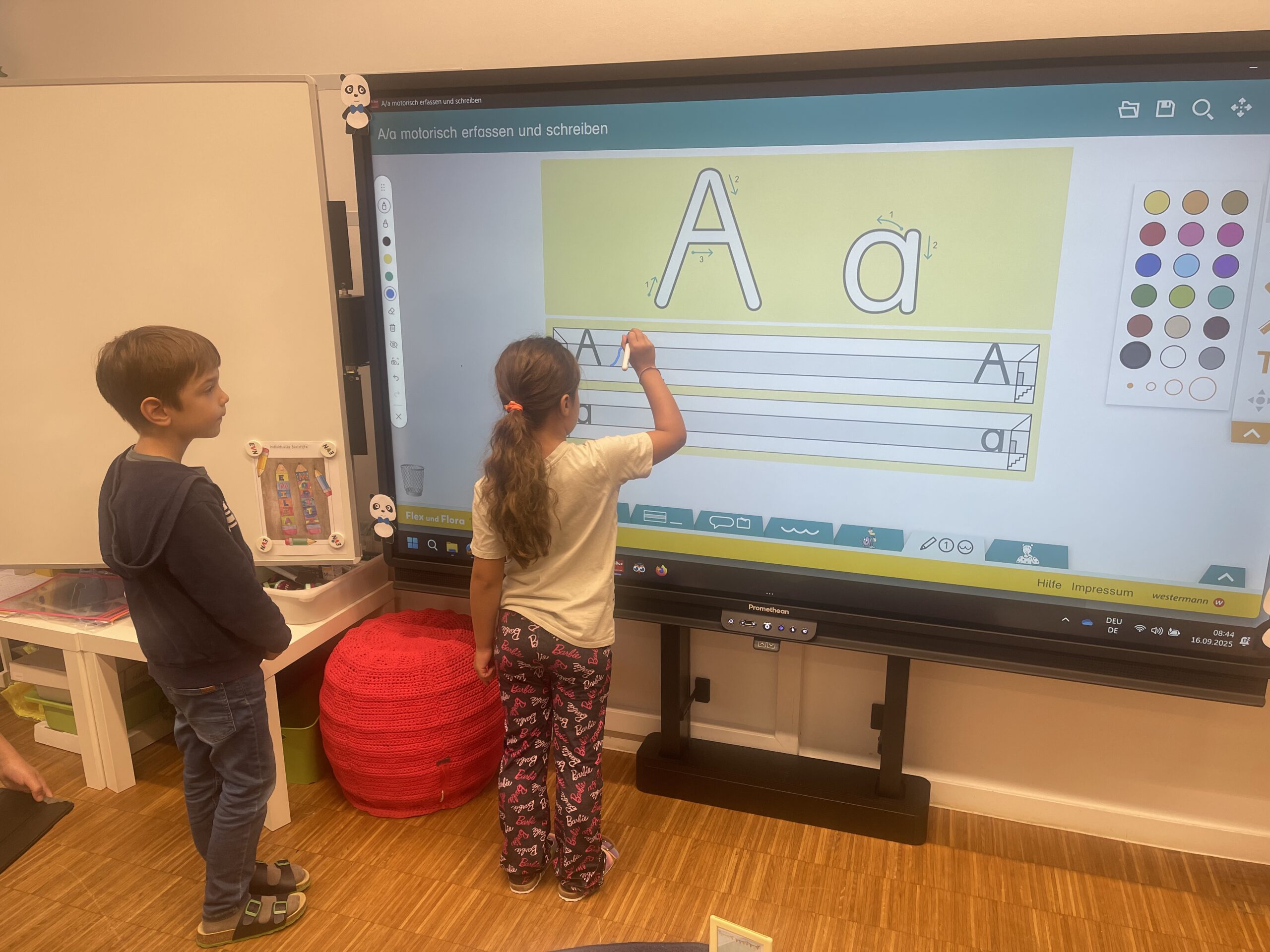 Wir hatten in der 1a unseren ersten Buchstabentag. An verschiedenen Stationen haben wir den Buchstaben Aa kennengelernt. Wir haben ihn nachgespurt, an der Tafel geschrieben, genau hingehört, ihn aus Knete geformt und ihn im Suchsel gefunden. Zum Schluss durften wir das Aa auch in der Anton App üben. Es war ein spannender Start in unsere Buchstabenreise!