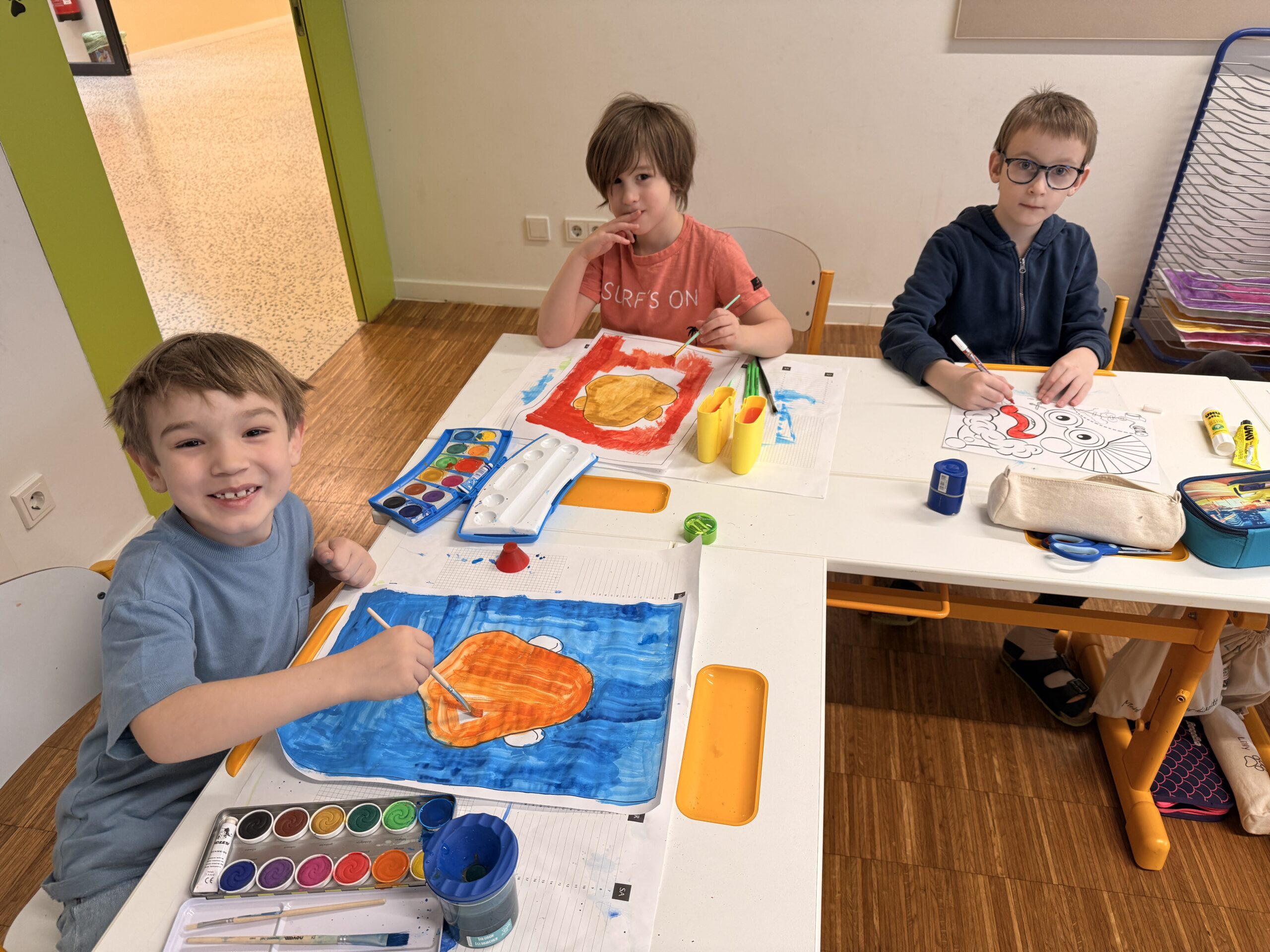Im Kunstunterricht verwandelten sich die Kinder in kleine KĂŒnstlerinnen und KĂŒnstler. Mit Wasserfarben entstanden fröhliche Clownbilder mit roten Nasen, kunterbunten HĂŒten und den lustigsten Grimassen. Dabei blieb kein Pinsel trocken und kein LĂ€cheln aus â echte Kunstwerke, die sofort gute Laune verbreiten!