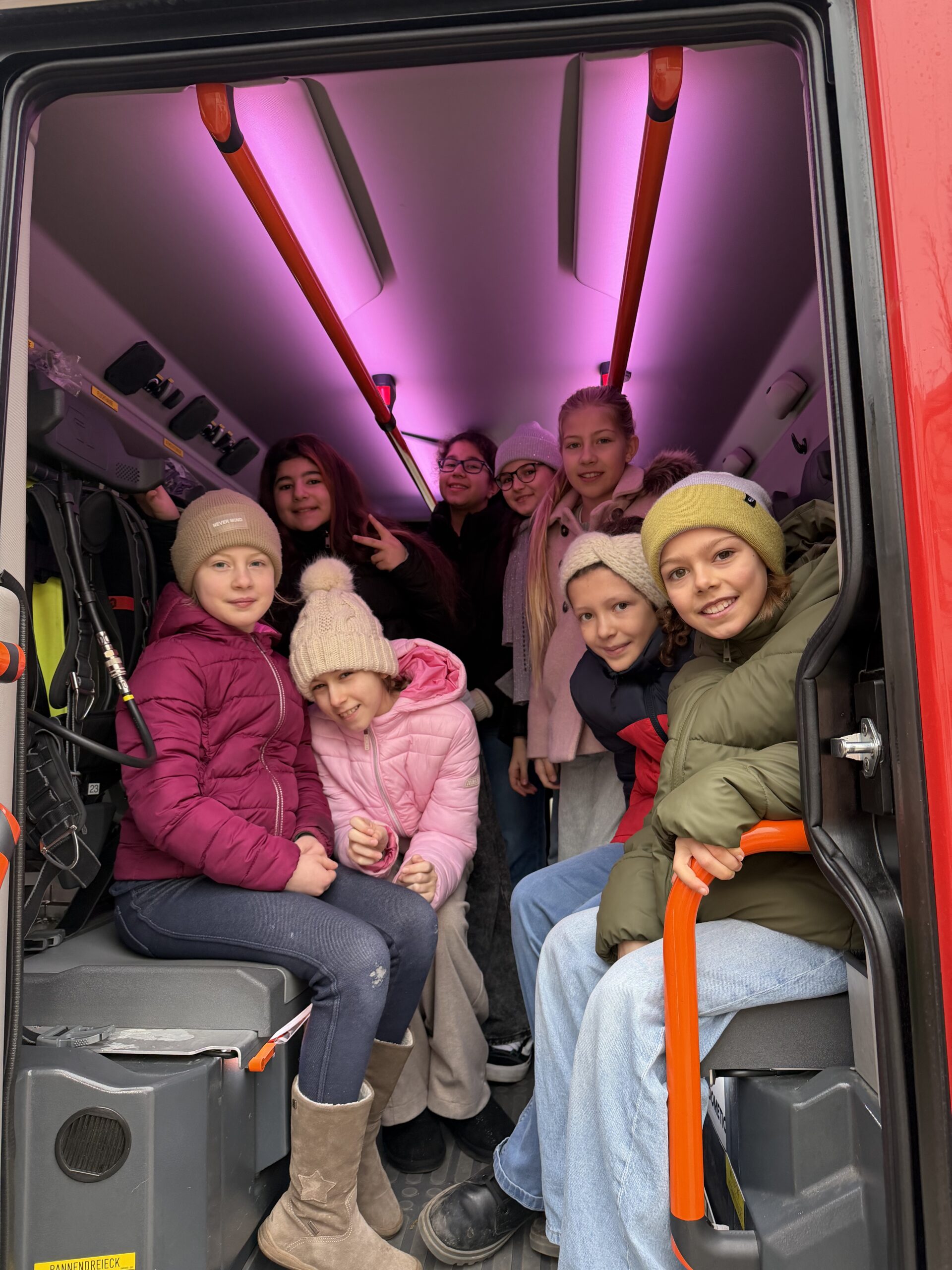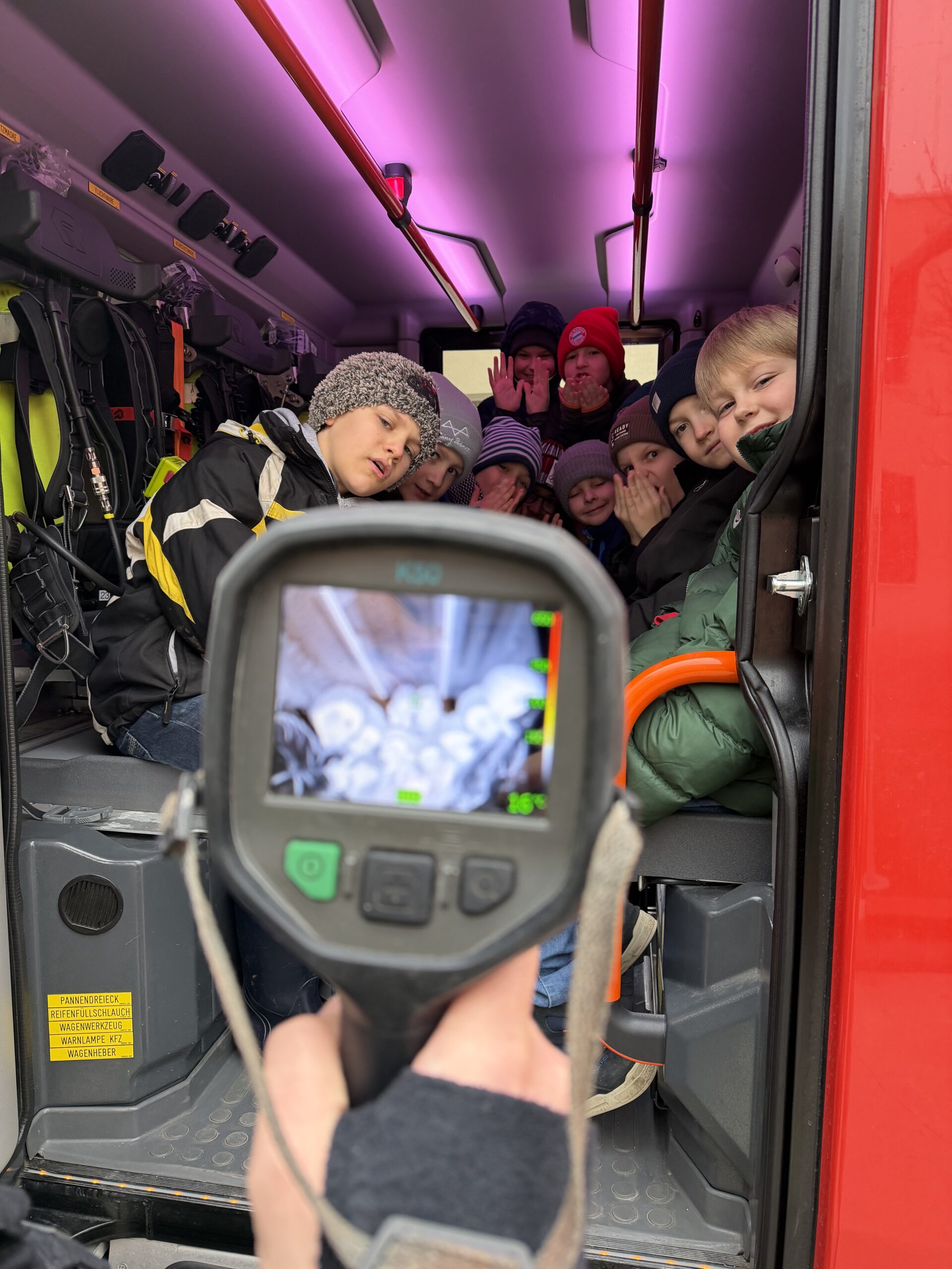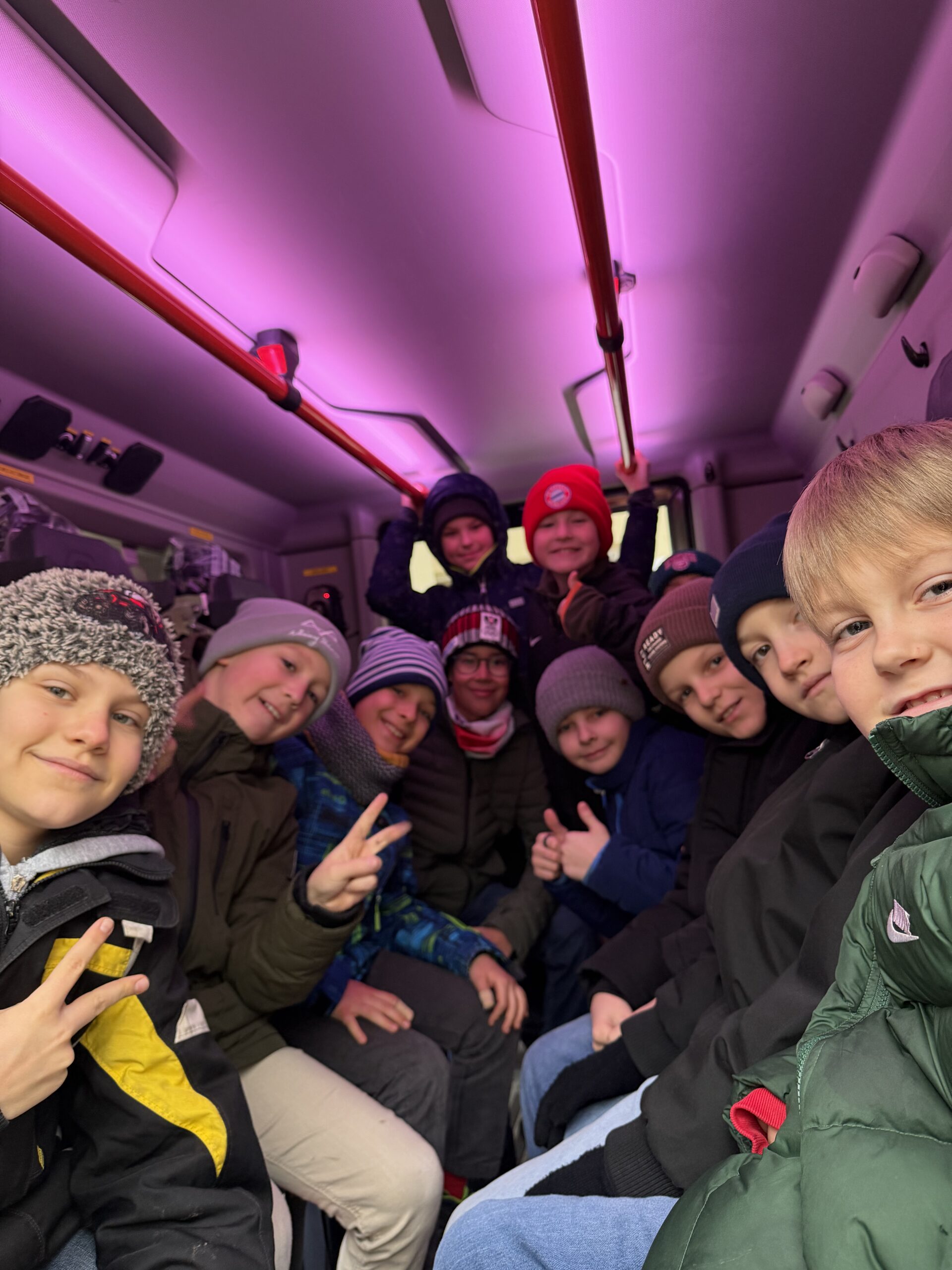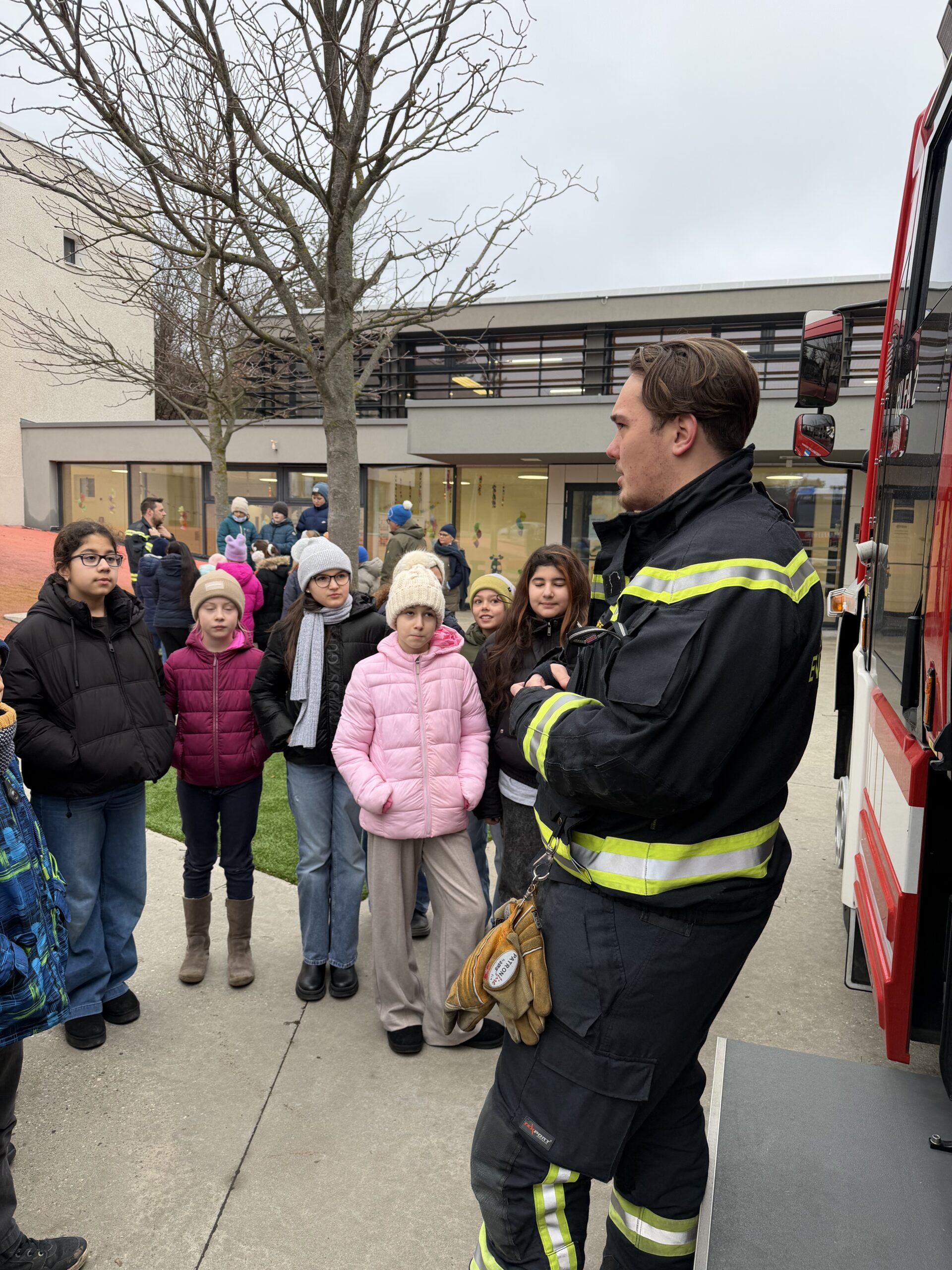 Die Feuerwehr María Enzersdorf besuchte mit einem Feuerwehrauto die vierten Klassen in der Schule. Die Feuerwehrleute erklärten ihre Schutzkleidung und warum sie so wichtig ist. Danach zeigten sie das Feuerwehrauto und die Geräte darin. Außerdem erklärten sie, was bei einem Einsatz passiert: Nach einem Notruf fahren die Feuerwehrleute schnell los und helfen Menschen, löschen Brände oder retten Tiere.