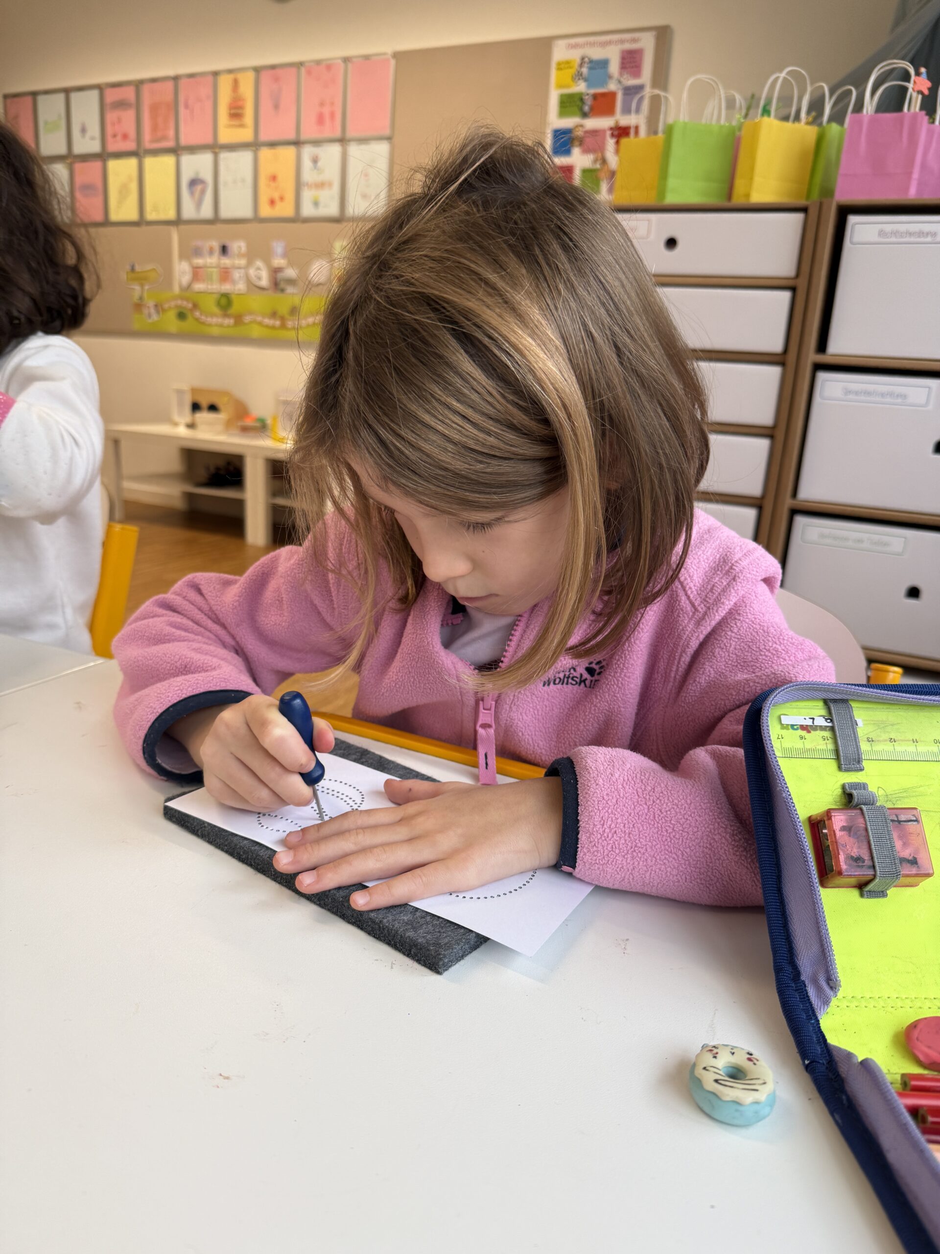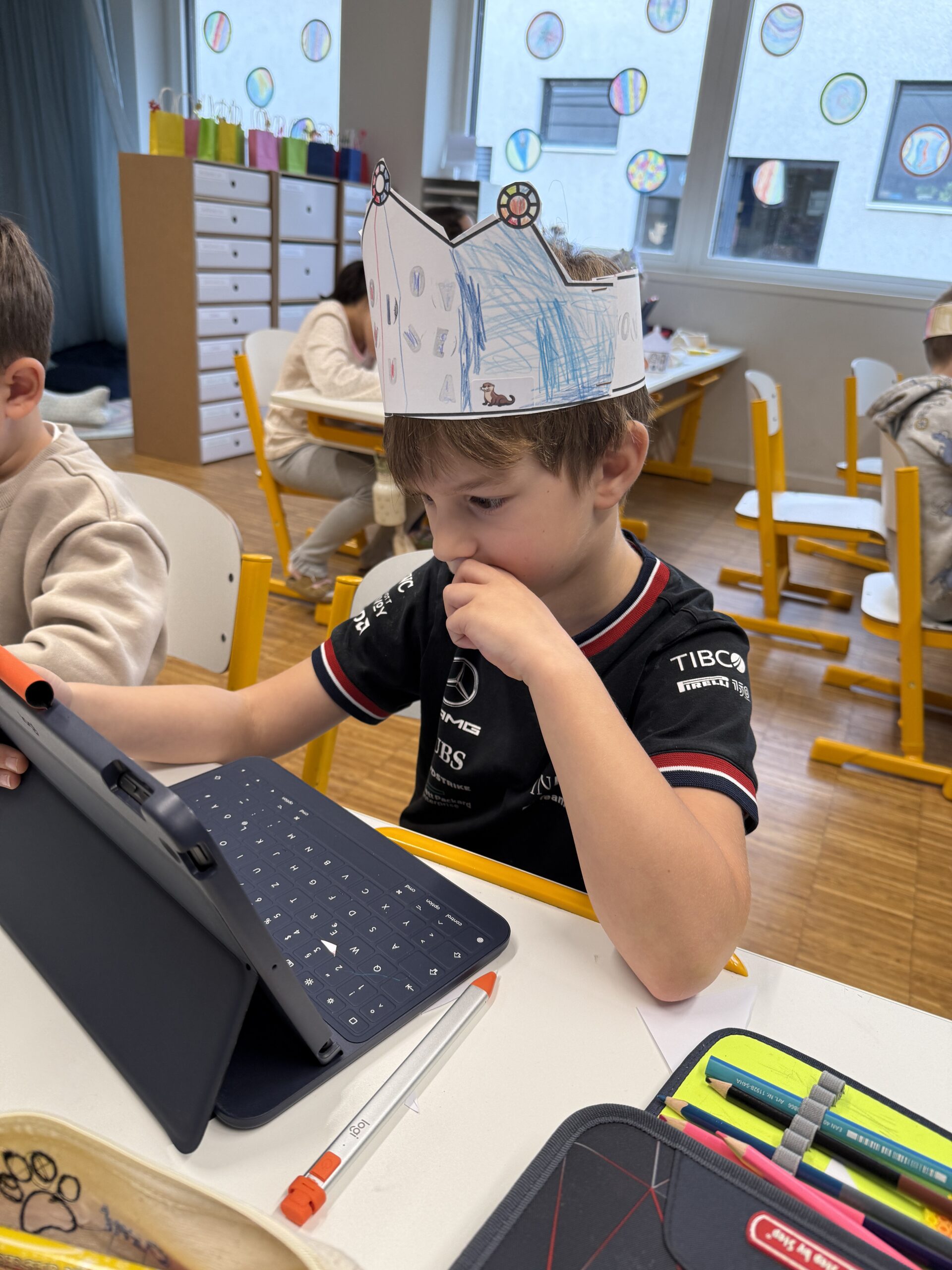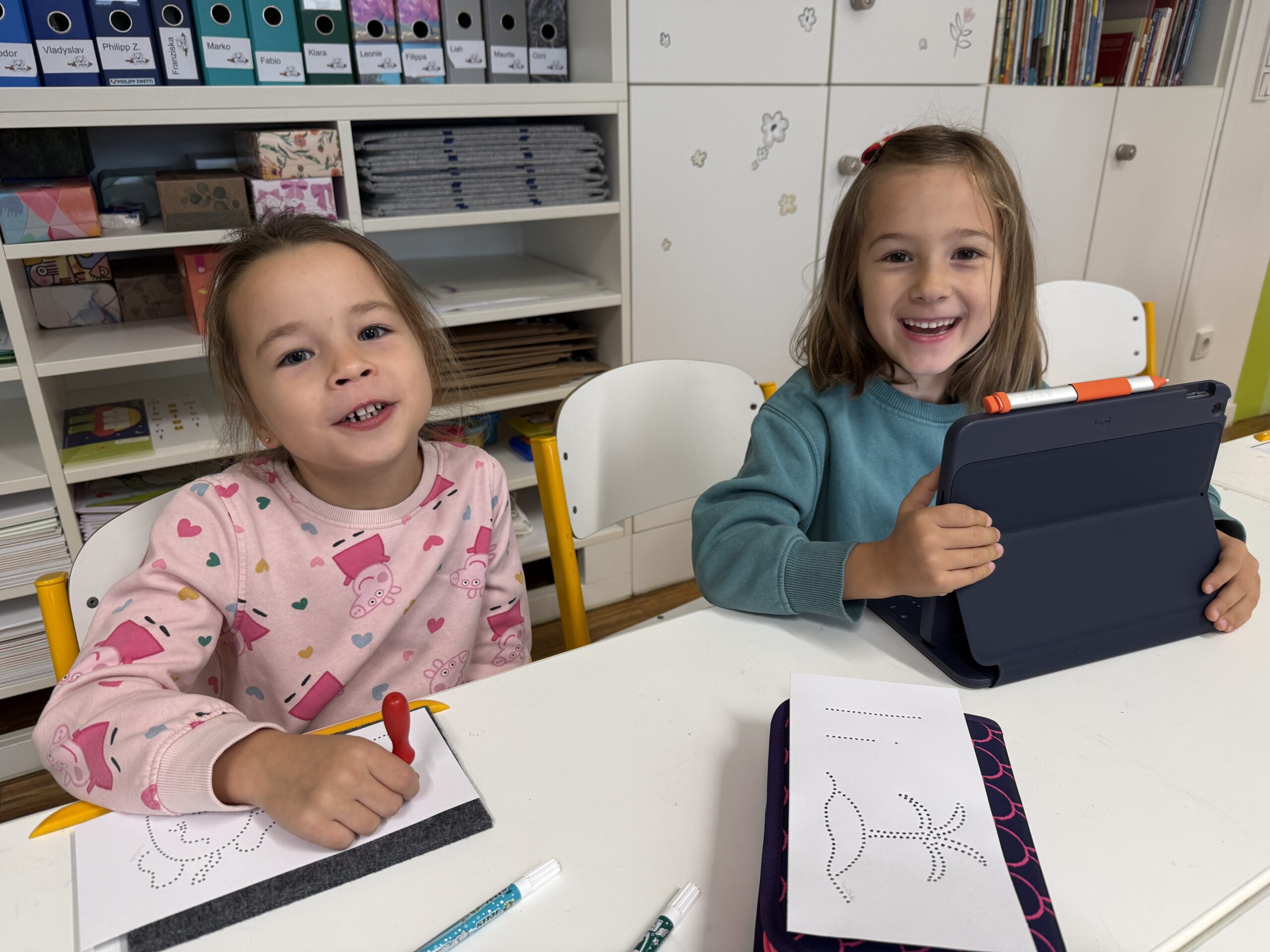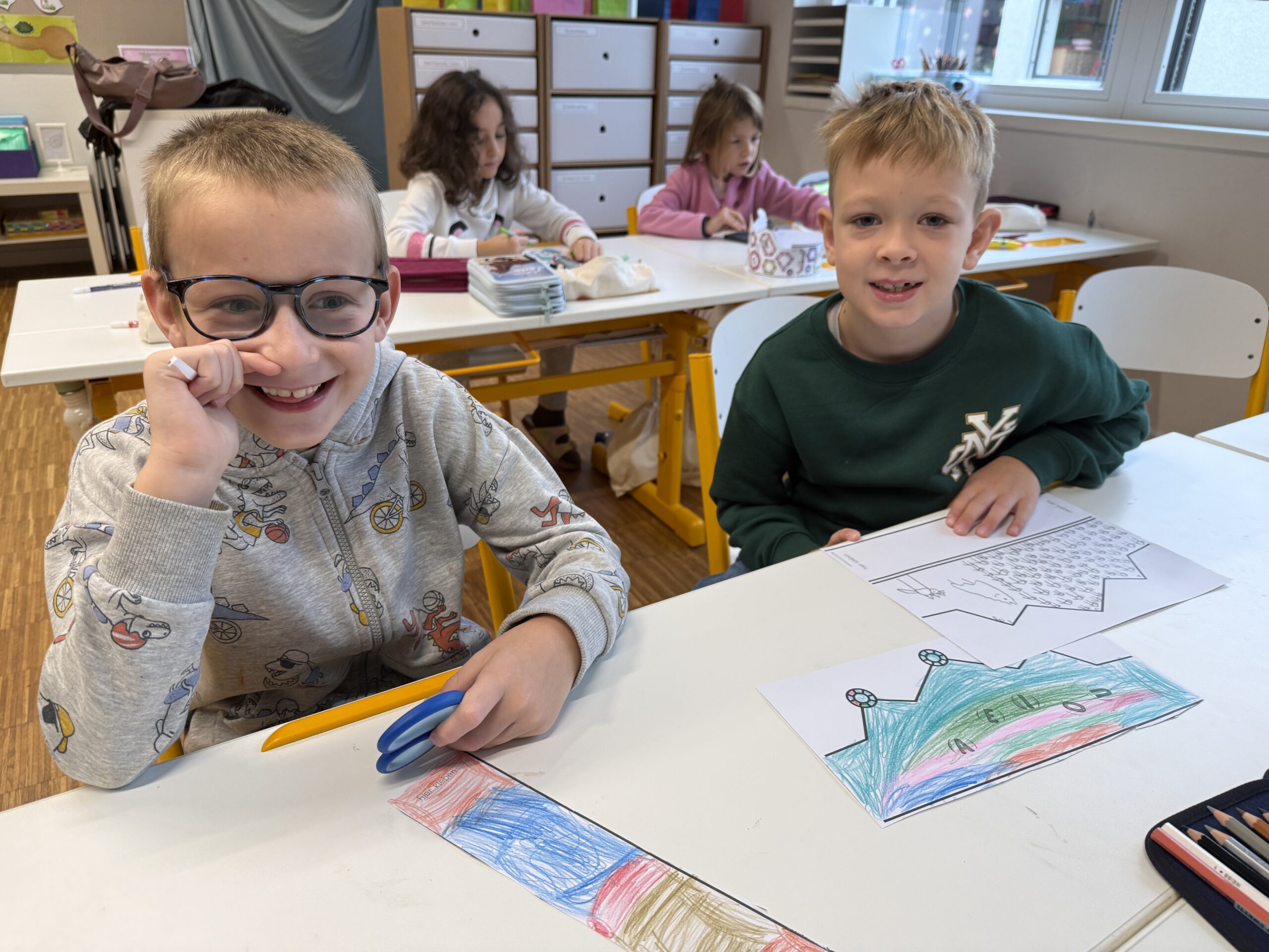 Heute feierte die 1B ein ganz besonderes Fest: Wir haben nun alle Selbstlaute – unsere „Piloten“ – gelernt! Dieses Ereignis würdigten wir mit einem fröhlichen Pilotenfest. Die Kinder bastelten bunte Kronen, prickelten Buchstaben und konnten am iPad arbeiten. Auch für leckere Stärkung war gesorgt: Es gab Ananas, Erdbeeren, Oreos und Ufos zum Naschen. Ein gelungener Tag, an dem Lernen und Feiern wunderbar zusammenpassten!