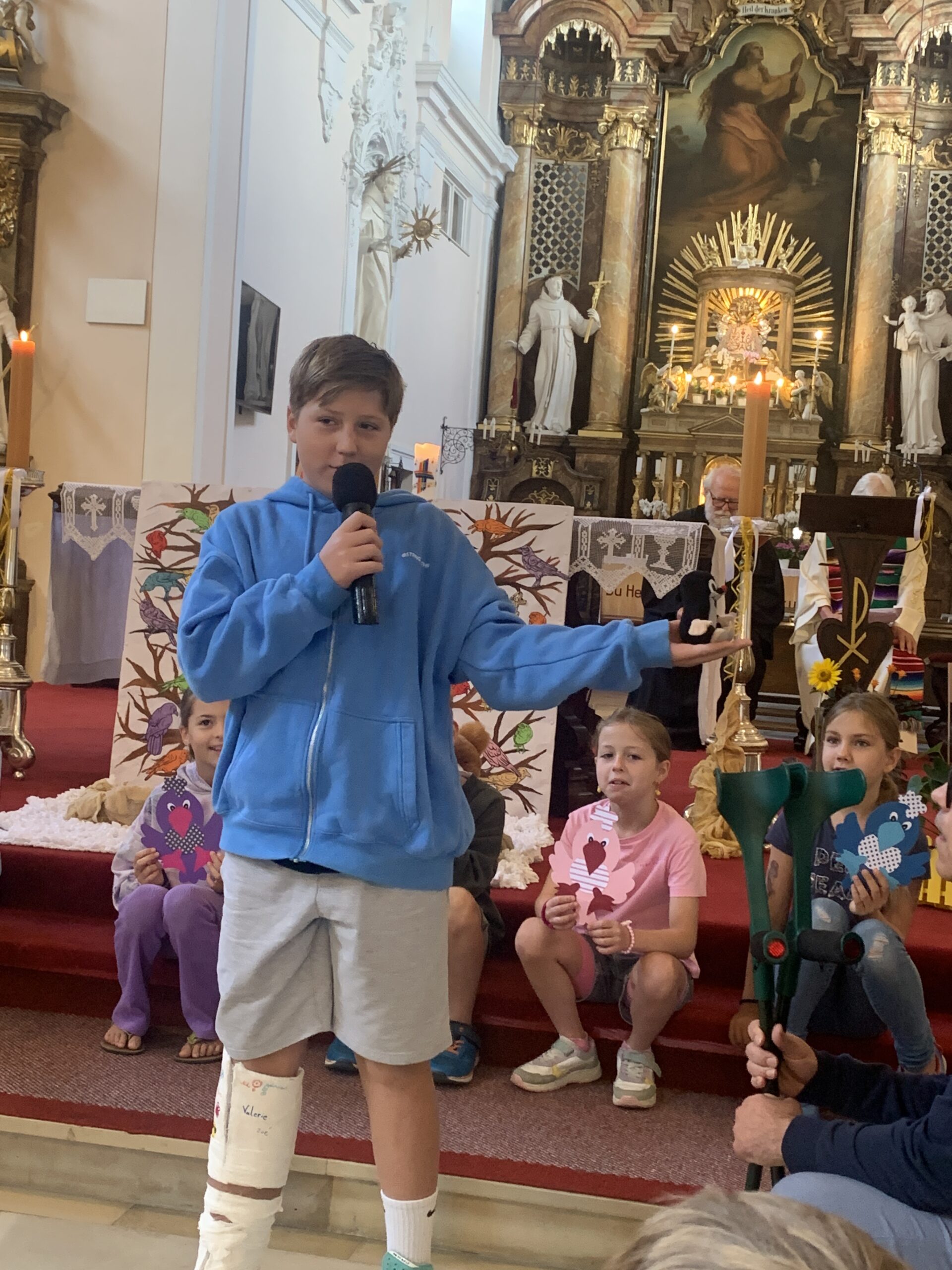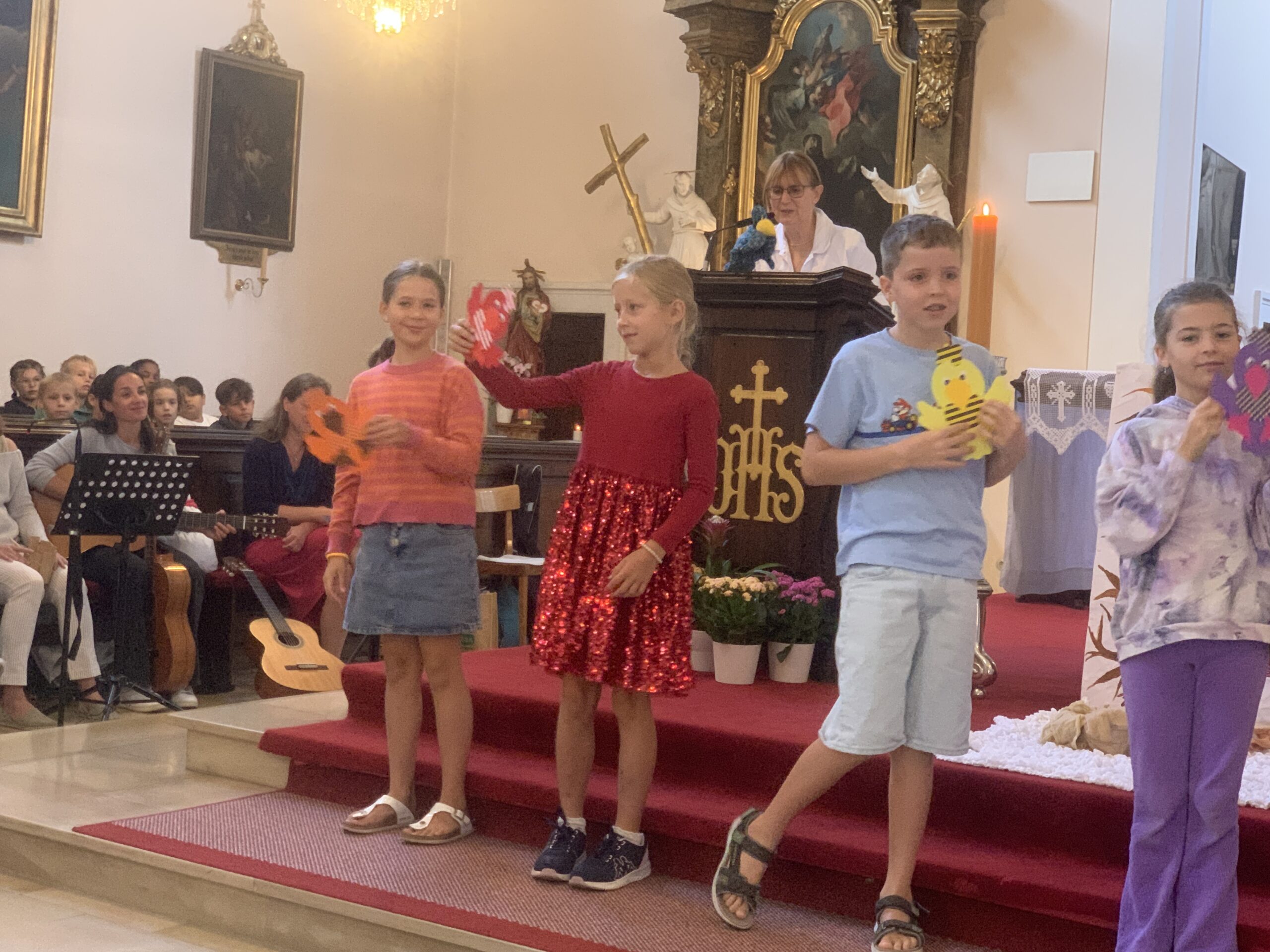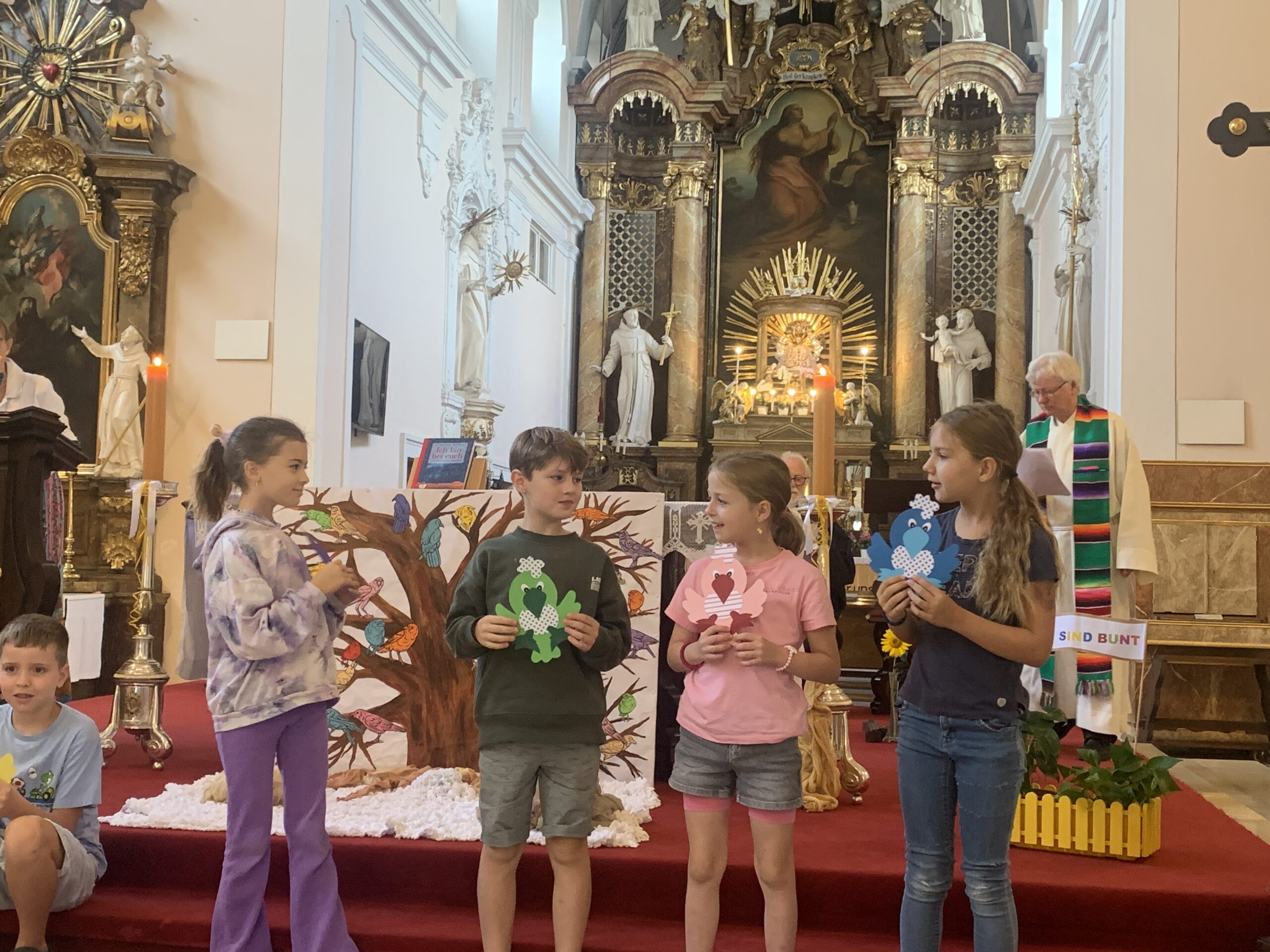 Mit dem Motto „Wir sind bunt“ starteten die 2., 3. und 4. Klassen in das neue Schuljahr. Gemeinsam feierten wir eine feierliche und zugleich fröhliche Schulmesse, die von den Kindern der 4c mit viel Einsatz und Freude zusammen mit den Religionslehrerinnen gestaltet wurde.