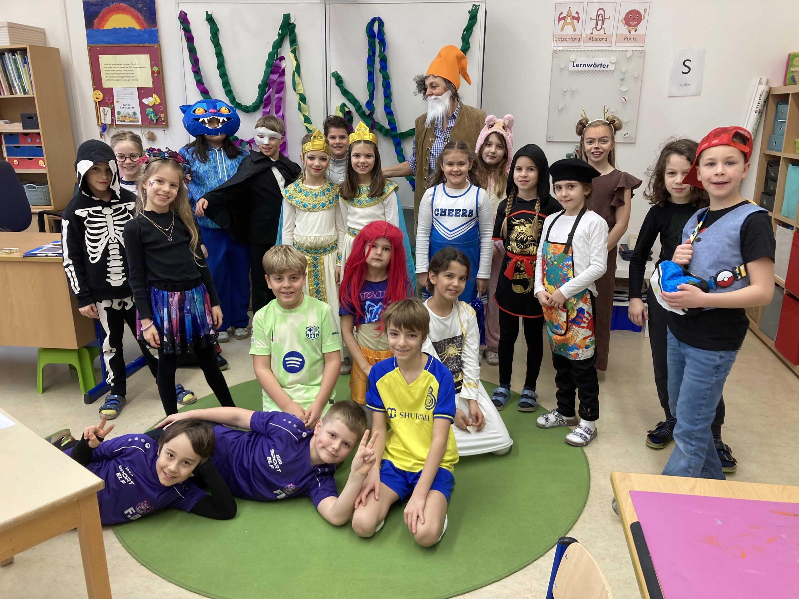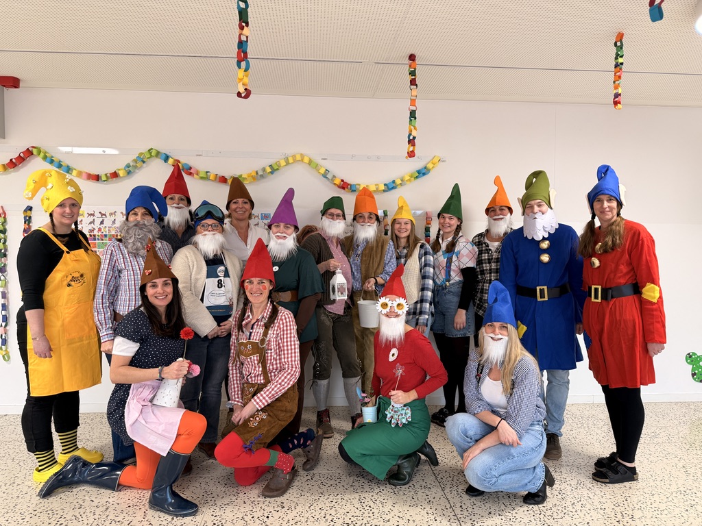 Für viele Lacher sorgten außerdem unsere Lehrerinnen, die sich gemeinsam als Gartenzwerge verkleidet hatten. Mit bunten Mützen und guter Laune trugen sie maßgeblich zur fröhlichen Faschingsstimmung bei.